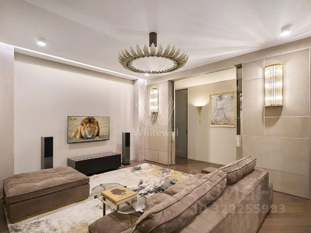 В квартире выполнена премиальная дизайнерская отделка с использованием высококачественных и натуральных материалов, таких как: натуральный мрамор, анодированная бронза, натуральный итальянский шпон, анодированная латунь.