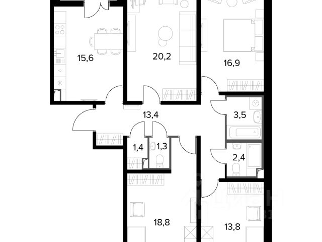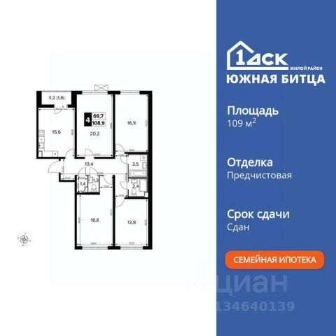 Прямая продажа от застройщика! Семейный жилой район класса Комфорт Плюс Продаётся 4-к квартира номер 495 общей площадью 101.2 кв.м. на 20-м этаже 23 этажного здания. Отделка Whitebox. Цена с учётом скидки. Особенности квартиры: - Увеличенное количество окон - дополнительное освещение и свежий воздух. - Гостевой санузел - комфорт и удобство для ваших гостей. - Душ помимо ванной - дополнительное удобство для вашей семьи. - Раздельный санузел - больше удобства для всех членов семьи. - Просторная кухня - место для семейных ужинов и кулинарных экспериментов. - Гардеробная - удобство для хранения и организации вещей. - Ниша под шкаф - компактное и удобное место для вещей. - Лоджия - уютное место для отдыха и тишины. - Панорамное остекление лоджии - открывает вид на окружающий мир. Квартира с предчистовой отделкой (White box). Вам не придется заниматься черновыми и трудоёмкими работы, а чистовую отделку и дизайн - сделайте на свой вкус. Информация о комплексе: Сочетание свободного перемещения по внутреннней территории без машин и ощущения абсолютной безопасности благодаря надежным ограждениям - вот что отличает ЖК Южная Битца. На территории комплекса созданы все условия как для активного образа жизни, так и для спокойного времяпрепровождения. Свободно перемещайтесь по внутренней территории в безбарьерной среде! Продуманное зонирование во дворах позволяет отделить тихие зоны для родителей со спящими младенцами и тех, кто хочет почитать на свежем воздухе, от шумных игровых зон. Игровые зоны учитывают возраст детей. Площадки для детей старшего возраста вынесены за пределы дворов. Ощущение уютного дома должно начинаться с подъезда. Мы постарались предусмотреть все нюансы, чтобы наши лифты отвечали самым строгим современным требованиям. А наличие кладовых позволит вам поддерживать идеальный порядок и уют в вашей квартире! Транспортная доступность: В 3 км от МКАД в нескольких минутах езды до трех станций метро: Аннино, Бульвар Дмитрия Донского, улица Старокочаловская и станции МЦД2 - жд Бутово. Внутренняя инфраструктура: Для жителей жилого района "Южная Битца" доступна развитая инфраструктура близлежащих московских районов Чертаново, Южное, Бирюлёво Западное, Северное Бутово и Южное Бутово. Множество образовательных учреждений, объекты здравоохранения, торговые и развлекательные центры, кинотеатры, кафе, рестораны, парки.