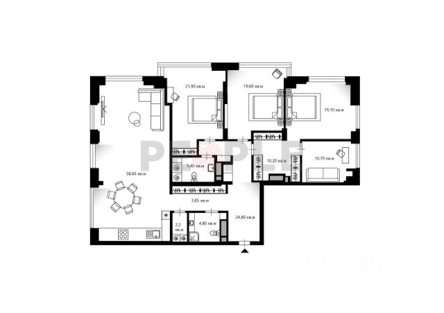 Продается 4-к квартира площадью 139.9 кв.м. на 36-м этаже в жилом комплексе премиум-класса River Park Кутузовский в Башне Diamond Tower О жилом комплексе. Премиальный жилой комплекс River Park Кутузовский строится в одном из самых престижных районов столицы Дорогомилово, на берегу Москвы-реки. Яркий проект в стиле эко-футуризма станет самым масштабным и самым высотным ЖК в локации Кутузовского проспекта. В проекте будет впервые воплощена концепция Family Premium. Расположение и Транспортная доступность: - На берегу Москвы-реки, напротив Москва-Сити - 600 метров до Кутузовского проспекта - Удобный съезд с ТТК - Прямой выезд на МКАД по Северному дублеру Кутузовского проспекта. - В пешей доступности 3 станции метро: Фили, Парк Победы, Кутузовская, а также станция МЦД Фили. Архитектура от именитого бюро ADM отличается уникальной пластикой фасадов - башни словно парят в воздухе, играя гранями как драгоценные камни. Жилой комплекс состоит из 5-ти небоскребов с home park на закрытой территории и внешней торговой галереей с открытым доступом. В закрытом внутреннем дворе уникальная по насыщенности клубная инфраструктура - 5 Towers Club только для жителей: - Многофункциональная спортивная площадка (баскетбол, футбол, воллейбол, большой теннис) - Детский игровой клуб NEMO - Life Rooms с караоке, барной стойкой и meeting room - Music salon - Gedonist Club с бильярдной - Beauty station - Гольф-симулятор Впервые в Москве lounge зоны на крыше небоскребов, только для жителей: - Всесезонные беседки иглу - Джакузи - Барная стойка - Грили - Площадка для занятий йогой - Самые высоки качели на крыше в России - Видовые площадки Благоустройство комплекса занимает 3 гектара и разработано мировым экспертом по городским парковым ландшафтам - голландским бюро WEST8. Концепция проекта дать жителям отдохнуть от городского ритма, расслабиться среди природы и натуральных материалов. В home park будут высажены многолетние деревья по принципу no allergy. - Зеркальный пруд с арт-объектом - Две детские площадки - Work out с навесом - Цветущий сад - Party lounge - Видовая зона отдыха с очагом - Солярий На территории жилого комплекса планируется строительство крупного образовательного центра: детский сад на 200 мест и школа на 460 мест.