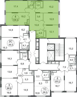 Продается четырехкомнатная квартира в городе-парке "Переделкино Ближнее". Общая площадь квартиры - 104,9 кв. м, этаж 13 из 17. Срок сдачи - 3 квартал 2028 года. Тип дома - монолитный. Корпус расположен в 13 фазе строительства и состоит из 6 секций с переменной этажностью 12-17 этажей. Все секции с отделкой White Box с возможностью повышения за дополнительную плату до дизайнерской отделки: Classic или Smart+ Около 13 фазы запланировано строительство многоуровневого паркинга на 300 м/мест. 13 фаза имеет уникальное расположение и находится непосредственно на берегу Федосьинского пруда, который является сердцем города-парка "Переделкино Ближнее". Город-парк "Переделкино Ближнее" расположен в 8 км от МКАД по Боровскому шоссе. ТРАНСПОРТНАЯ ДОСТУПНОСТЬ: - 15 минут пешком до станции МЦД-4 "Мичуринец" - 25 минут пешком до станции метро "Рассказовка" Солнцевской линии - 30 минут до центра Москвы - 2026 г. - открытие трассы Солнцево-Бутово-Варшавское шоссе РАЗВИТАЯ СОЦИАЛЬНАЯ ИНФРАСТРУКТУРА: - 7 детских садов, 3 школы - банки, продуктовые магазины, аптеки, фитнес центры, салоны красоты и пр БЛАГОУСТРОЙСТВО: - дворы без машин - игровые зоны и развивающие детские площадки - зоны для созерцательного и медитативного отдыха - зоны для занятий спортом ОСОБЕННОСТИ АРХИТЕКТУРЫ: - высокие потолки от 3,03 м - безбарьерные входные группы - колясочные в каждой входной группе - кладовые помещения расположены на -1 этаже каждой секции - в каждой секции 2 лифта: 1 пассажирский, 1 грузовой - на фасаде предусмотрены корзины для установки кондиционеров АВТОРСКИЙ ДИЗАЙН: Входные группы выполнены по авторскому дизайну, благодаря панорамному остеклению наполнены естественным светом. В каждой входной группе будет располагаться комфортабельная зона ожидания с возможностью зарядить электронные устройства, почтовые ящики, колясочная, акцентные пуфы и столик.