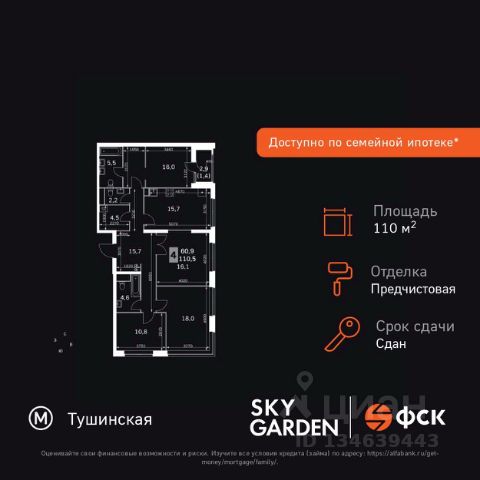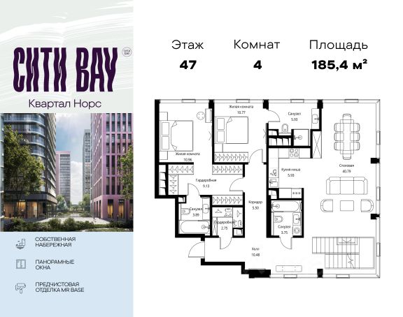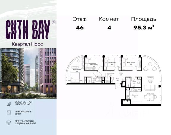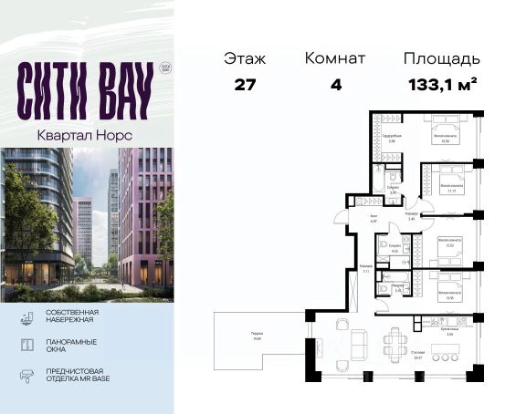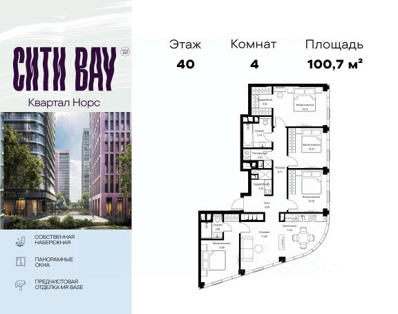 Прямая продажа от застройщика. Продаётся 4-комнатная квартира общей площадью 108.52 м² с предчистовой отделкой в ЖК Сити Бэй, квартале Норс, на 17-м этаже 21 этажного дома. Концепция жилого комплекса Сити Бэй - настоящий город в городе с отлично развитой инфраструктурой и собственной благоустроенной набережной. На территории жилого комплекса расположено пять кварталов - Атлантик, Пасифик, Индиан, Норс, Клиф. Жилой квартал Сити Бэй отличается оригинальной концепцией и выделяется среди других проектов такими характеристиками как: - Архитектура, - Виды из окон, - Природное окружение, вызывая гордость у жителей и восхищение у прохожих. Вся жизнь района Покровское-Стрешнево строится вокруг водных объектов: - Пойма реки Сходни с уникальной экосистемой, - Речка Химка и Химкинское водохранилище, - Москва-река, - Канал имени Москвы. Кругом вода, и местные с удовольствием этим пользуются. А сразу за рекой - центр водного спорта в Строгино с вейк-парком и яхт-Клубами. Помимо воды, здесь очень много зелени: - Рядом Сходненский ковш памятник природы, естественный амфитеатр глубиной 40 метров; - Парк при усадьбе Братцево с фруктовым садом; - Дубовая роща "Маяк", - Алешкинский лес; - Лесопарк Покровское-Стрешнево с пляжами и бобрами. Главные транспортные артерии района: - Волоколамское шоссе, - Таганско-Краснопресненская линия метро и МЦД-2. Всего за 20 минут можно добраться до центра на машине или метро, а МЦД связывает ЖК Сити Бэй с северными, восточными и юго-восточными районами. Компания MR предлагает своим клиентам специальные условия приобретения квартир в рамках программ ипотечного кредитования от банков-партнеров.