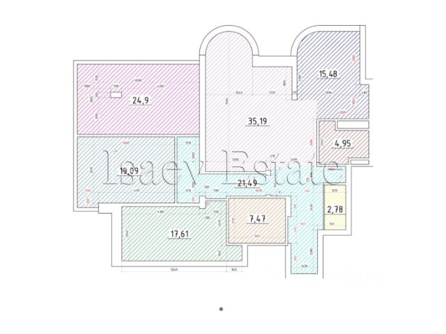 Всего в квартире 4 комнаты: кухня-гостиная, 3 изолированные комнаты, а также 3 санузла, постирочная, гардеробная.
