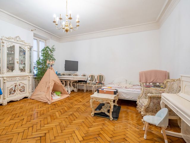 ID 585704 Видовая квартира с исключительной отделкой по проекту английского дизайнера в малоквартирном доме на улице Спиридоновка. Квартира площадью 173,3 кв.м. на 8 этаже с панорамными видами на тихий центр. Квартира продается со всей обстановкой под ключ - включая мебель, технику, шторы на электроприводе, ковры. Функциональное планировочное решение: просторная гостиная, кухня-столовая, мастер блок, состоящий из спальни, гардеробной и санузла, вторая спальня со своим санузлом, кабинет (можно использовать как третью спальню), гостевой санузел, постирочная. Итальянская кухня укомплектована всей необходимой техникой Gaggenau (духовой шкаф, варочная панель, микроволновая печь, посудомоечная машина, холодильник), винный шкаф EuroCave. Пол в коридоре и на кухне с подогревом - натуральный мрамор, американский паркет - массив ореха, стены - натуральная кожа и шелк. Раковина в мастер-санузле выполнена из оникса, сантехника Villeroy & Boch, Washlet. Постирочная оборудована стиральной и сушильной машинами Miele. Вся мебель в квартире изготовлена по индивидуальному заказу и привезена из Италии, диван и кресла в гостиной представлены от Armani. В квартире установлена центральная система кондиционирования Daikin. Интегрирована система "Умный дом" и уникальная аудиосистема со скрытыми музыкальными колонками. Имеется собственный бойлер. Окна от лучшего немецкого производителя Wessel-fenstertechnik имеют уникальную структуру и остекление поверх дерево-алюминиевой рамы (индивидуальное исполнение под проект квартиры). Огороженная территория дома с просторной наземной парковкой. Двор и прилегающая территория утопают в зелени. В шаговой доступности - МХАТ Горького, театр Маяковского, Геликон Опера, Консерватория и Кремль. Номер объекта: #1/585704/14501