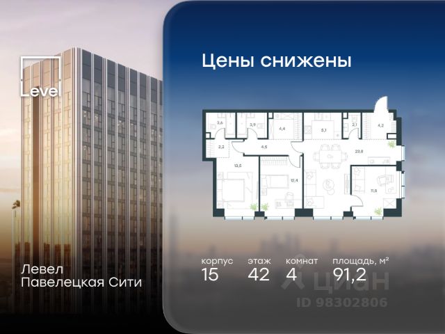 4-к квартира квартира в премиальном комплексе HIGH LIFE на 17-м этаже в 26 этажном здании. Общая площадь 104.5 кв. м. HIGH LIFE - премиальный проект компании PIONEER, расположенный в 5 минутах от Садового кольца, вблизи исторического Замоскворечья. Авторская архитектура от бюро ADM. Панорамные окна и изящные эркеры открывают виды на Кремль, МГУ, Москва-Сити, Дом Музыки и набережные реки. 70% видовых квартир. Инфраструктура и сервис отеля 5*: • Дизайнерские лобби • Частный кинозал • Библиотека с камином • Двухуровневый двор-парк 2 га с хвойным лесом и террасами • Залы для йоги и занятий спортом • Массажный кабинет, СПА и бьюти-зоны • Консьерж-сервис Технологии и инженерия: • Центральная система кондиционирования • Дополнительная вентиляция помещений • Буферная мусорокамера • Обеззараживание воздуха • Мониторинг качества воды с дополнительной доочисткой • Дополнительная шумоизоляция • Автоматизированная система передачи данных в УК Системы безопасности: • Датчики движения • Круглосуточное наблюдение • Система доступа с распознаванием лиц • Приложение для наблюдения за квартирой • Система пожарного обнаружения • Датчики дыма и протечек За 24 года на рынке недвижимости компания PIONEER реализовала более 30 проектов. Сегодня PIONEER - девелопер премиальной недвижимости с 4 проектами класса премиум и делюкс. Звоните, и мы с удовольствием расскажем все подробности о нашем замечательном проекте и условиях покупки. Продажа от застройщика. Продам 4-комнатную квартиру с евроремонтом в районе Даниловский в Москве.