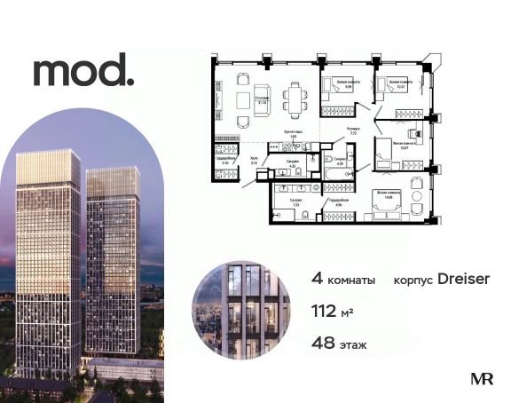 В премиальном жилом квартале PRIDE продается 4-комнатная квартира в 1 корпусе, на 9 этаже, в секции 8. Её общая площадь составляет 130.7 м². Пространство включает 3 уютные спальни 12,6 м², 12,6 м², 13,8 м², просторную кухню-гостиную 48,9 м² и 2 ванные комнаты 7,2 м² и 5,3 м². В квартире будет выполнена дизайнерская отделка, представленная двумя стилистическими решениями на выбор. Ключи в 2026 году. Удобная локация: Жилой квартал расположен в 15 минутах от Цветного бульвара в историческом районе Марьина Роща. До любой точки города быстро и удобно добраться, как на общественном транспорте, так и на авто — комплекс находится всего в 3 минутах от ТТК и в пешей доступности от метро. Яркая архитектура с переменной высотностью от 7 до 22 этажей от именитого бюро APEX формирует запоминающийся облик проекта. Развитая инфраструктура: Территория квартала делится на несколько отдельных частей: открытый просторный бульвар 3500 м² для прогулок и два внутренних камерных двора. Внутри предусмотрены площадки для спорта, места для игр и тихие пространства для отдыха и неторопливого общения. Коммерческие и торговые помещения спроектированы на уровне первых этажей: супермаркеты, магазины, рестораны и кофейни, барбершоп, спа-салон и другие сервисные точки. Образовательный центр со школой на 257 учеников и детским садом на 112 мест на собственной территории квартал - идеальное решение для семей с детьми. Таким образом, внутренняя инфраструктура PRIDE обеспечит все базовые потребности будущих жителей. Благоустроенная территория: Ландшафтный дизайн с многоуровневым и замысловатым озеленением будет радовать жителей на протяжении всех сезонов — богатая флора дворов включает в себя несколько десятков видов растений. Лобби как в лучших отелях мира: На первых этажах резидентов и гостей встретят лобби с авторским дизайном от Sundukovy Sisters, бюро знаменито своими работами для отелей и ресторанов премиум-класса во всем мире. Надежный застройщик: Девелопер PIONEER — компания с 24-летней историей. В портфеле — 40 проектов жилой, коммерческой, социальной и многофункциональной недвижимости в Москве и Санкт-Петербурге. С 2001 года было реализовано 2,9 млн м². В настоящее время 1,6 млн м² находятся в стадии проектирования и строительства. Среди новых знаковых проектов девелопера — премиальные жилые кварталы и деловые объекты класса A. Продается 4-комнатная квартира с евроремонтом в районе Марьина роща в Москве.