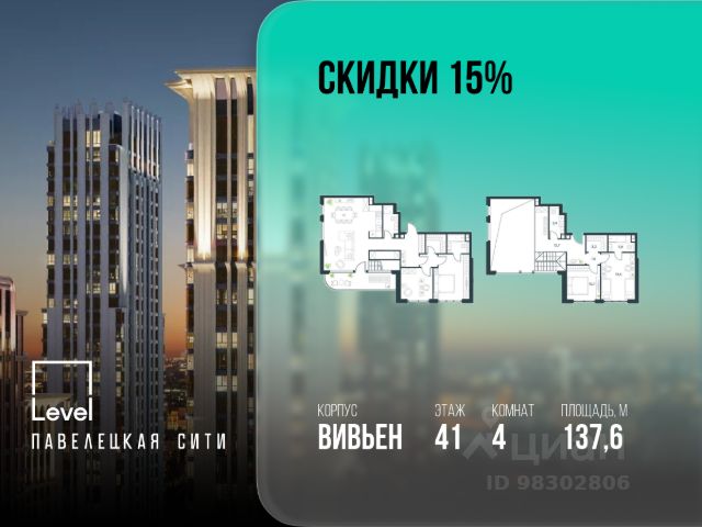 4-к квартира квартира в премиальном комплексе HIGH LIFE на 27-м этаже в 39 этажном здании. Общая площадь 108.4 кв. м. HIGH LIFE - премиальный проект компании PIONEER, расположенный в 5 минутах от Садового кольца, вблизи исторического Замоскворечья. Авторская архитектура от бюро ADM. Панорамные окна и изящные эркеры открывают виды на Кремль, МГУ, Москва-Сити, Дом Музыки и набережные реки. 70% видовых квартир. Инфраструктура и сервис отеля 5*: • Дизайнерские лобби от Jaime Beriestain Studio • Частный кинозал • Библиотека с камином • Двухуровневый двор-парк 2 га с хвойным лесом и террасами • Залы для йоги и занятий спортом • Массажный кабинет, SPA и бьюти-зоны • Консьерж-сервис Технологии и инженерия: • Центральная система кондиционирования • Дополнительная вентиляция помещений • Буферная мусорокамера • Обеззараживание воздуха • Мониторинг качества воды с дополнительной доочисткой • Дополнительная шумоизоляция • Автоматизированная система передачи данных в УК Системы безопасности: • Датчики движения • Круглосуточное наблюдение • Система доступа с распознаванием лиц • Приложение для наблюдения за квартирой • Система пожарного обнаружения • Датчики дыма и протечек За 24 года на рынке недвижимости компания PIONEER реализовала более 30 проектов. Сегодня PIONEER - девелопер премиальной недвижимости с 4 проектами класса премиум и deluxe. Звоните, и мы с удовольствием расскажем все подробности о нашем замечательном проекте и условиях покупки. Продажа от застройщика. Купить 4-комнатную квартиру с евроремонтом рядом с метро Павелецкая.