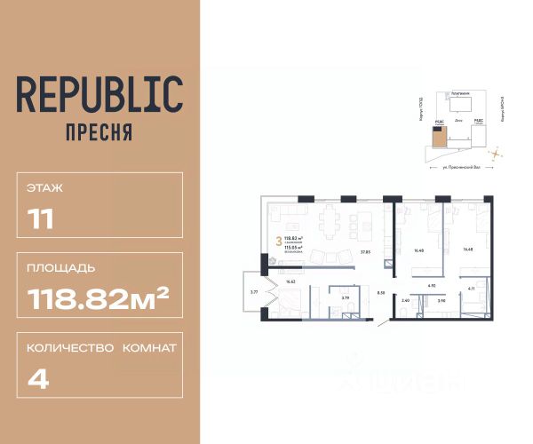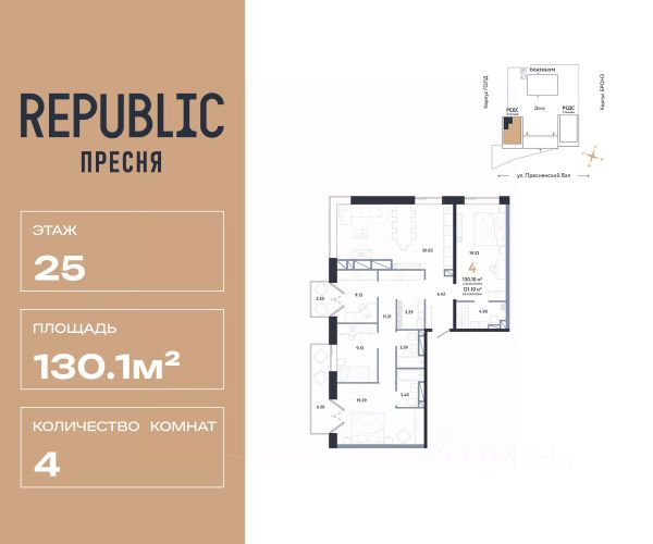 Продаётся 4 - комнатный пентхаус в готовом доме (Корпус 4.1), общей площадью 359.5 кв.м., на 21 этаже. О жилом комлексе Жилой квартал Lucky - это переосмысление и регенерация общественно-делового кластера площадью более 4.5 гектаров в центре Москвы. О застройщике Девелопер проекта Vesper специализируется в премиальном сегменте клубной жилой недвижимости. Портфель компании включает 22 проекта в Москве и странах Европы. Актуальные архитектурные проекты, индивидуальный дизайн, передовые технологии, качественные материалы и лучшие мировые практики воплощены в каждом доме компании. Расположение и транспортная доступность Квартал расположен на пересечении улиц 2-ая Звенигородская и Костикова, в 200 метрах от метро "Улица 1905 года". В непосредственной близости от парков, Москвы- реки, Сити и Садового кольца формируется идеальная среда для семейного проживания в мегаполисе. Архитектура Визуально квартал разделен на две части: верхний город с новыми высотными жилыми домами и нижний город с общественным пространством для инфраструктуры, где располагается новый социокультурный кластер площадью около 10 000 кв. м. Верхний город состоит из восьми жилых домов: семь 21-этажных башен и одно здание высотой 15 этажей. В восьми новых домах расположены 618 квартир. На каждом этаже 3-4 квартиры, большая часть которых имеет ориентацию на 2-3 стороны света. Из панорамных окон открываются виды на набережную Москва-реки, Сити и близлежащие парки. Знаковая архитектура, продуманные планировочные решения, изысканная отделка, инновационные инженерные решения воплощены в квартале Lucky. Инфраструктура В квартале представлена инфраструктура для всей семьи: парки и скверы, билингвальный детский сад La Berezka, собственный 600 м. игровой парк для детей, фитнес с подогреваемым бассейном на крыше, рестораны, кафе и магазины органических продуктов. В шаговой доступности от квартала расположены лучшие рейтинговые школы.