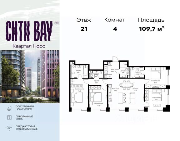 Прямая продажа от застройщика. Продаётся 4-комнатная квартира общей площадью 108.52 м² с предчистовой отделкой в ЖК Сити Бэй, квартале Норс, на 17-м этаже 21 этажного дома. Концепция жилого комплекса Сити Бэй - настоящий город в городе с отлично развитой инфраструктурой и собственной благоустроенной набережной. На территории жилого комплекса расположено пять кварталов - Атлантик, Пасифик, Индиан, Норс, Клиф. Жилой квартал Сити Бэй отличается оригинальной концепцией и выделяется среди других проектов такими характеристиками как: - Архитектура, - Виды из окон, - Природное окружение, вызывая гордость у жителей и восхищение у прохожих. Вся жизнь района Покровское-Стрешнево строится вокруг водных объектов: - Пойма реки Сходни с уникальной экосистемой, - Речка Химка и Химкинское водохранилище, - Москва-река, - Канал имени Москвы. Кругом вода, и местные с удовольствием этим пользуются. А сразу за рекой - центр водного спорта в Строгино с вейк-парком и яхт-Клубами. Помимо воды, здесь очень много зелени: - Рядом Сходненский ковш памятник природы, естественный амфитеатр глубиной 40 метров; - Парк при усадьбе Братцево с фруктовым садом; - Дубовая роща "Маяк", - Алешкинский лес; - Лесопарк Покровское-Стрешнево с пляжами и бобрами. Главные транспортные артерии района: - Волоколамское шоссе, - Таганско-Краснопресненская линия метро и МЦД-2. Всего за 20 минут можно добраться до центра на машине или метро, а МЦД связывает ЖК Сити Бэй с северными, восточными и юго-восточными районами. Компания MR предлагает своим клиентам специальные условия приобретения квартир в рамках программ ипотечного кредитования от банков-партнеров. 4-комнатной квартиры с евроремонтом в районе Покровское-Стрешнево в Москве.