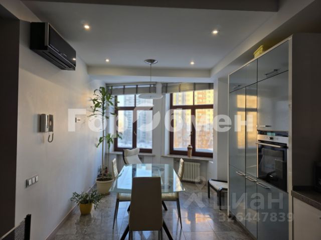 Продается 4-комнатная квартира с 3-мя спальнями на 17 этаже 22-этажного монолитного дома, в престижном районе Москвы, Крылатское, ЖК Крылатские Огни. Общая площадь 161.5 кв.м, жилая 136,3 кв.м (включая гостиную), 3 комнаты, 2 совмещенных санузла (один с сауной) Квартира с дизайнерским ремонтом, современной мебелью и техникой. Бытовая техника: плита, духовка, кофеварка, микроволновка, посудомойка, стиралка - Miele Холодильник SbS - Bosch, Холодильник для вина - Siemens Кухонный гарнитур - Италия Сантехника Grohe, Geberit, JOOP! Душевая кабина, унитазы - JOOP! Ванна гидромассаж, унитаз - Jacob Delafon Мебель в квартире - Италия Сауна - Harvia Saunas Неподалеку от комплекса находится природная заповедная зона Крылатские Холмы. На первых этажах корпусов размещены магазины, кафетерий, тренажерный зал, банковское отделение, фитнес-клуб, ремонтная мастерская, парикмахерская и обслуживающие организации. В округе микрорайона находятся школы, детские сады, больницы и поликлиники, торговые и развлекательные центры. Также жителям комплекса доступны все близлежащие объекты богатой инфраструктуры района Крылатское. Территория жилого комплекса огорожена по периметру, выполнены работы по благоустройству. Во дворах проведено озеленение, установлены детские и спортивные площадки. Дом оснащен 3-мя лифтами, пандусом, мусоропроводом. Действует охраняемая наземная автостоянка на 267 машиномест, а подземные парковочные зоны оснащены автомойками. Безопасность обеспечивается сигнализацией, системой круглосуточного наблюдения и противопожарной безопасности, контролем на въезде, а также работой консьержей. Основание права договор долевого участия 2002 года. 1 взрослый собственник, свободная продажа, полная стоимость в договоре. Продается 4-комнатная квартира с евроремонтом на улице Крылатские Холмы в Москве.