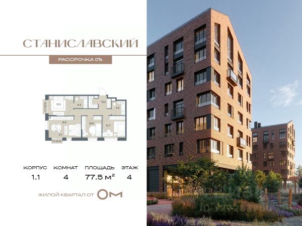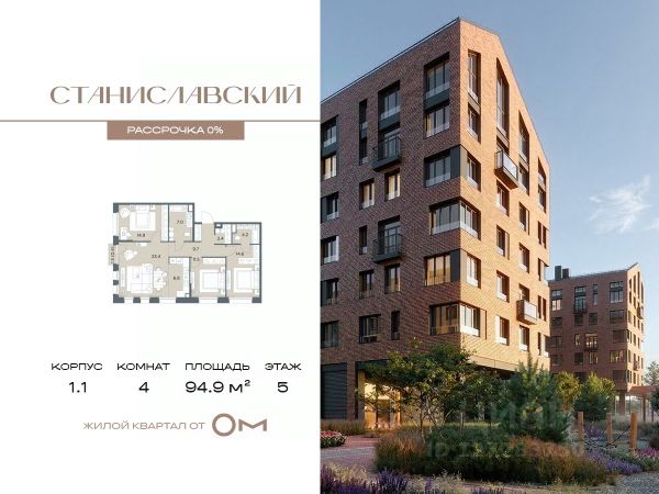 Беспроцентная рассрочка от застройщика. В продаже 4-комнатная квартира квартира площадью 96.0 м², расположенная на 6 этаже в жилом квартале "Станиславский" — проекте бизнес-класса на Новорижском шоссе, всего в 10 минутах от Москвы. В квартире 178 Дом 1 (Корпус 1.1, секция 5) высота потолков — от 3 метров, просторная планировка с гардеробной и большой кухней-гостиной создают комфорт и свободу для воплощения ваших идей. В проекте есть разнообразные отделочные решения, что позволяет реализовать любые дизайнерские предпочтения и планировочные идеи. В "Станиславском" представлены квартиры на любой вкус и для любой семьи: студии, классические и европланировки, а также крупные 4- и 5-комнатные варианты. Все помещения предлагаются без отделки, что дает свободу для создания уникального пространства. Обустроенная территория предусматривает функциональное зонирование: зеленые бульвары, природные тропы, интерактивные зоны, центральная площадь с подиумом для мероприятий и спортивный кластер. Для жителей предусмотрены разнообразные сценарии досуга: тихие зоны для общения, массажные тропы и сад ароматных трав для оздоровления, всесезонные уличные игры и открытые поляны для спортивных и настольных развлечений. Также есть познавательная зона с огородом, скворечниками и микроскопами. В концепции ЖК "Станиславский" особое внимание уделено въездной зоне: здесь создана комфортная площадка для встреч с гостями, обрамленная живой изгородью. Отсюда также открывается доступ к специально оборудованной территории для выгула питомцев — всё продумано для удобства и уюта жителей.