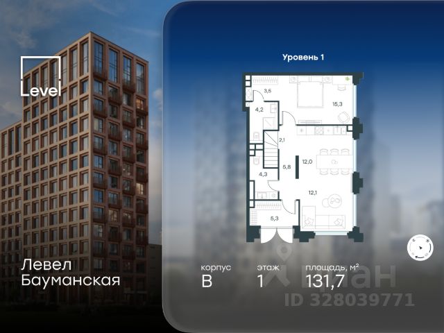 Цена указана с учётом скидки при 100%-й оплате, несубсидированной ипотеке, рассрочке (кроме программы "Рассрочка 0%"). В Басманном районе (ЦАО) продается 4-комнатная квартира площадью 131.70 кв.м без отделки. Квартира расположена на 1 этаже 21-этажного корпуса " B" в жилом комплексе бизнес-класса Левел Бауманская (компания Level Group). Отличная транспортная доступность: - 15 мин. пешком до метро "Бауманская" и "Электрозаводская"; - 4 мин. на авто до ТТК; - 8 мин. на авто до Садового кольца; - 15 мин. на авто до Кремля. Продуманный архитектурный проект: - Архитектура от бюро ARCH(E)TYPE, вдохновленная историей района; - 95% квартир с панорамными видами на набережные, парки и сталинские высотки; - Высокие потолки от 3,02 м до 6,3 м; - Лобби с комфортными лаунж-зонами; - Благоустроенный закрытый двор без машин. Расположение и инфраструктура: Жилой комплекс Левел Бауманская расположен в престижном Басманном районе (ЦАО). В пешей доступности находится легендарный МГТУ им. Баумана, Британский и Ломоносовский лицеи, а за 10 минут на автомобиле можно доехать до НИУ ВШЭ и других престижных вузов. На территории проекта предусмотрена развитая внутренняя инфраструктура: собственный детский сад и 10 коммерческих помещений на первых этажах домов. Благоустройство: Концепция благоустройства создана в соавторстве с именитым бюро GAFA. На площади 0,35 га расположатся зоны для отдыха, занятий спортом и прогулок. Во дворе для жителей жилого комплекса будет создан коворкинг прямо на свежем воздухе - открытые беседки и вайфай на территории. Атмосферу приватности подчеркнёт обилие растительности - деревья и кустарники займут 50% двора. За счёт большого количества хвойных насаждений территория жилого комплекса будет зелёной круглый год. Инженерия и комфорт: Жители жилого комплекса Левел Бауманская не зависят от сезонного отключения горячей воды. Для этого в проекте предусмотрены центральные водонагреватели, обеспечивающие комфорт круглый год. Для безопасности созданы следующие системы контроля доступа: круглосуточное видеонаблюдение всех общественных зон (лобби, двор, лифты, паркинг), вызывные панели у входов на закрытую территорию, видеодомофоны с возможностью управления через мобильное приложение, распознавание автомобильных номеров при въезде/выезде в/из паркинга. По заявке собственнику предоставляется возможность просмотра изображения отдельных видеокамер. Лифты: В жилом комплексе устанавливается лифтовое оборудование SRH - одного из ведущих производителей с 20-летним опытом и 40 представительствами по всему миру. Кабины от SRH отличаются тихим и плавным ходом, особой износостойкостью и современными технологическими и дизайнерскими решениями. Все лифты имеют прямой доступ в паркинг с жилых этажей. В домах также предусмотрен сервисный лифт. Грузоподъёмность лифтов от 450 до 1000 кг, скорость 1,6 м/с.