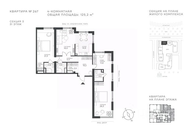 Продается 4-к квартира площадью 146.6 кв.м. на 10-м этаже в ЖК "Клубный квартал Крылатская 33". Прямая продажа от застройщика! Крылатская 33 - проект премиум-класса на западе Москвы от специализированного застройщика "Сияние". Комплекс расположен всего в 15 минутах от Садового кольца и Москва-Сити, а рядом есть большое количество зелёных зон: Крылатский и Москворецкий парки, Серебряный бор, Крылатские холмы - это создает идеальный баланс между приватностью и динамичным ритмом мегаполиса. Квартал сочетает высотные башни до 150 метров и камерные малоэтажные корпуса. Витражное остекление "в пол" наполняет квартиры светом и открывает захватывающие панорамы на Москву-реку и знаковые виды столицы. Здесь каждый найдет то, что подходит именно ему - от уютных студий до роскошных пентхаусов и квартир с собственными террасами. Внутренняя среда жилого комплекса продумана до мельчайших деталей, чтобы резиденты могли продуктивно работать и качественно отдыхать, не покидая территорию: • фитнес-центр, включающий в себя СПА-зону; • коворкинг с кофейней и быстрым интернетом; • общественная гостиная для организации клубных мероприятий; • ресторан с панорамным остеклением; • благоустроенный сад с зоной отдыха; • инновационная игровая площадка для детей всех возрастов; • консьерж-сервис 24/7, современные системы видеонаблюдения и пожаротушения; • двухуровневый паркинг и многое другое. Район Крылатское - точка притяжения для тех, кто выбирает активный образ жизни. В непосредственной близости расположены Гребной канал, Олимпийский велотрек, горнолыжный комплекс "Лата Трэк", гольф-клуб и парковые зоны. В проекте действуют привлекательные условия покупки: - выгода до 10% при 100% оплате (действует на ограниченный пул квартир, подробности уточняйте в отделе продаж). - рассрочка от застройщика 0% с первоначальным взносом от 20% на срок до 30.06.2027.
