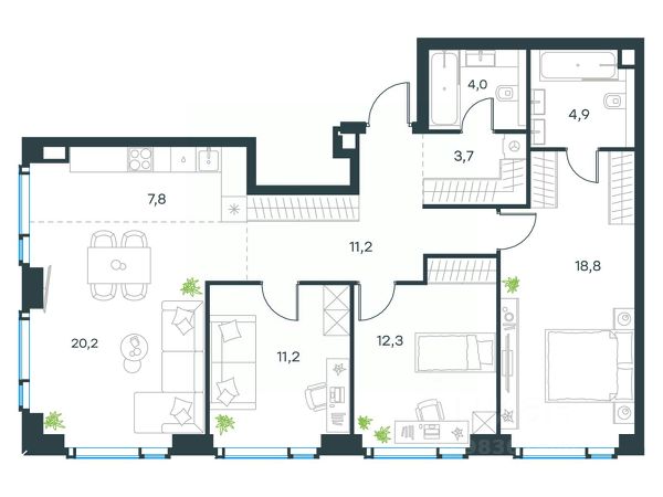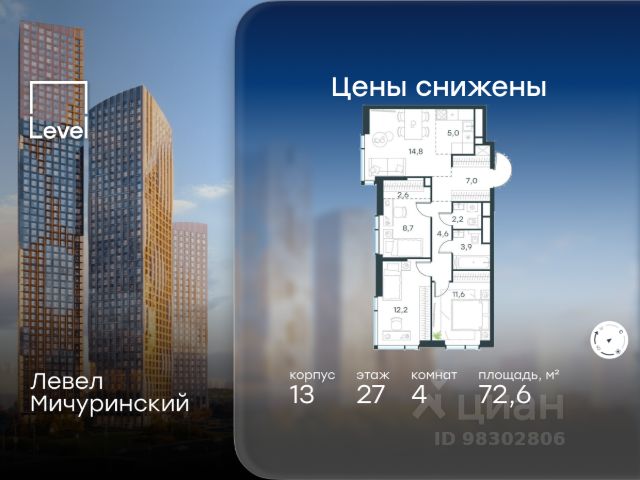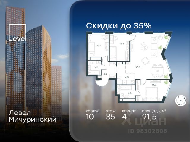 В жилом кластере Родина Парк рядом с природным заказником Долина реки Сетунь продаётся 4-комнатная квартира. Продуманная европланировка, которую легко зонировать под ваши запросы. Потолки от 3,1 м. "Родина Парк" — премиальный семейный кластер с образовательным медиакластером, строящийся на западе Москвы в окружении природного заповедника "Долина реки Сетуни". • Скидки недели на избранный пул лотов • Рассрочка 0% на выгодных условиях до 2 лет • Семейная ипотека, подбор комбо-вариантов ипотечных программ прямо в офисе продаж • Скидки 8% при 100% оплате или ипотеке. ЛОКАЦИЯ: 8 минут пешком до станции БКЛ "Давыдково". 12 минут на автомобиле до Нового Арбата. Удобные выезды на Кутузовский проспект, Аминьевское шоссе. ИНФРАСТРУКТУРА И СЕРВИСЫ ДЛЯ ЖИТЕЛЕЙ - Уникальная экосистема для развития, здоровья и творчества на территории 3,5 Га: - Первый в России образовательный медиакластер (с участием Русской медиагруппы) для творческого развития детей и взрослых с возможностью получить востребованную профессию в сфере шоу-бизнеса. - Инфраструктура и сервисы для семей с детьми на территории жилого кластера (частный детский сад, детские игровые пространства, творческие студии для занятий музыкой и танцами, безопасная и комфортная среда для детей и родителей), событийно-культурная площадка для проведения семейного досуга); - Здоровая среда (биохакинг-центр, фитнес-зал и спортивная инфраструктура во дворе, медитационные пространства, инженерные решения для освещения, свежего воздуха и очистки воды, сервисы красоты и поддержания активного долголетия); - Сервисы заботы (инфраструктура комфорта - подземный паркинг, кладовые, колясочные, консьерж- сервис, умный дом, мобильное приложение, профессиональная управляющая компания, сервисы охраны и обеспечение абсолютной безопасности) - Комьюнити резидентов (социальные пространства для дружеского и делового общения - летний атриум с уличным кинотеатром, зоны отдыха, кафе и рестораны, комьюнити-сервис с культурно- событийной программой в медиакластере); - Модуль благосостояния (комфортные пространства для работы и саморазвития - коворкинги и переговорные). ИНФРАСТРУКТУРА РАЙОНА: Насыщенная образовательная среда: филиалы МГИМО, МГУ, МГТУ, Сколково. Топовые школы: 6 лучших частных школ Москвы и области (Forbes) в 10 минутах езды. Природное окружение для пеших прогулок, спорта и отдыха. "Родина Парк" — это место, где растут и дети, и ваши возможности. Экосистема, где всё подчинено развитию — физически, профессионально, творчески.