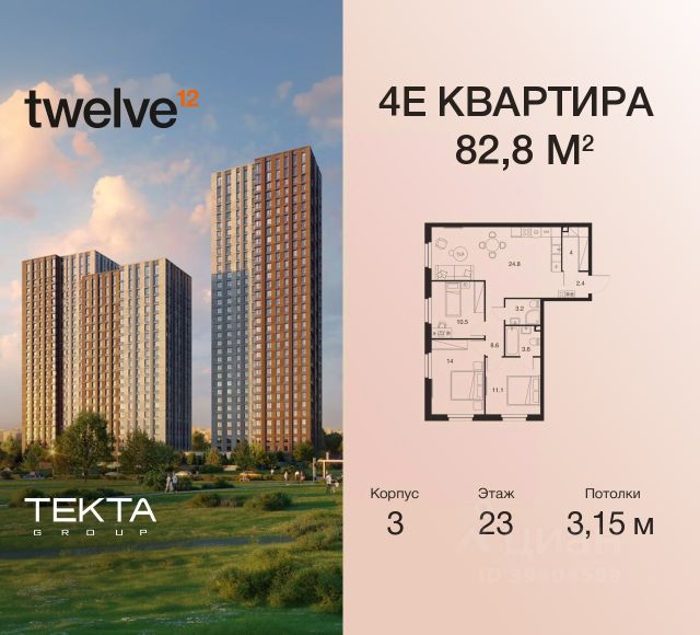 Рассрочка 0% с платежом от 120 000 ₽ в месяц. 4-комн. квартира в ЖК "Twelve" на 15 этаже в 34 этажном здании Корпус 1. Общая площадь: 87.3 кв.м., жилая: 60.70 кв.м. Высота потолков 3.00 м. ЖК Twelve от застройщика Tekta Group — это новый уровень жизни в районе Нагорный в 3-х минутах от станции метро. Проект представляет собой воплощение современной концепции комфортной жизни, где функциональность органично сочетается с эстетикой. Архитектура Twelve создает атмосферу, вдохновляющую на успех и располагающую к позитивным эмоциям. Дом, в котором каждый день будет наполнен уютом, а не рутинной работой и дорожными пробками. Twelve предлагает своим жильцам продуманные планировки, возможность объединения квартир, а также увидеть красоту города через угловое остекление увеличенных окон. Особое внимание уделено комфорту жителей: благоустроенная территория, зеленые насаждения, детские площадки, парковка. ЖК Twelve — это больше, чем просто жилье: это атмосфера умиротворенности, комфорта и гармонии.