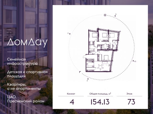 Продаётся 4 - комнатная квартира в готовом доме (Корпус 7), общей площадью 247.1 кв.м., на 21 этаже. О жилом комлексе Жилой квартал Lucky - это переосмысление и регенерация общественно-делового кластера площадью более 4.5 гектаров в центре Москвы. О застройщике Девелопер проекта Vesper специализируется в премиальном сегменте клубной жилой недвижимости. Портфель компании включает 22 проекта в Москве и странах Европы. Актуальные архитектурные проекты, индивидуальный дизайн, передовые технологии, качественные материалы и лучшие мировые практики воплощены в каждом доме компании. Расположение и транспортная доступность Квартал расположен на пересечении улиц 2-ая Звенигородская и Костикова, в 200 метрах от метро "Улица 1905 года". В непосредственной близости от парков, Москвы- реки, Сити и Садового кольца формируется идеальная среда для семейного проживания в мегаполисе. Архитектура Визуально квартал разделен на две части: верхний город с новыми высотными жилыми домами и нижний город с общественным пространством для инфраструктуры, где будет располагаться новый социокультурный кластер площадью около 10 000 кв. м. Верхний город будет состоять из восьми жилых домов: семь 21-этажных башен и одно здание высотой 15 этажей. В восьми новых домах расположены 618 квартир. На каждом этаже 3-4 квартиры, большая часть которых имеет ориентацию на 2-3 стороны света. Из панорамных окон открываются виды на набережную Москва-реки, Сити и близлежащие парки. Знаковая архитектура, продуманные планировочные решения, изысканная отделка, инновационные инженерные решения воплощены в квартале Lucky. Инфраструктура В квартале представлена инфраструктура для всей семьи: парки и скверы, билингвальный детский сад La Berezka, собственный 600 м. игровой парк для детей, фитнес с подогреваемым бассейном на крыше, рестораны, кафе и магазины органических продуктов. В шаговой доступности от квартала расположены лучшие рейтинговые школы.