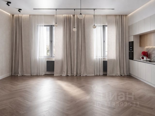Квартира расположена в тихом квартале на высоком этаже жилого комплекса, что даёт возможность находится в эпицентре событий района Хамовники, но наслаждаться камерностью так, как на этаже по две квартиры.