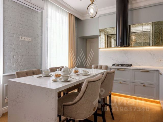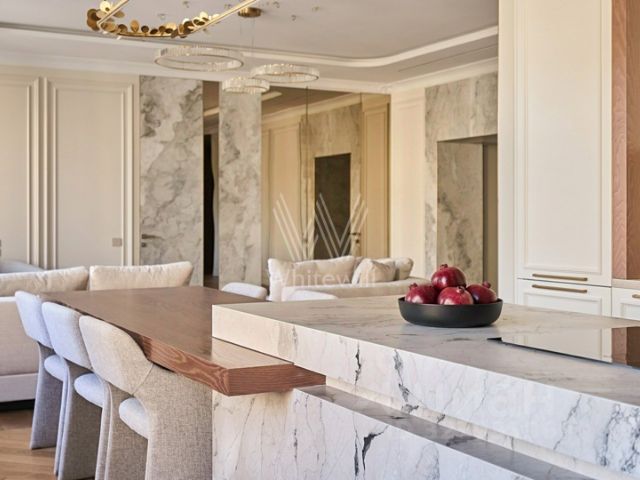 Продается квартира с премиальной отделкой на 3-м этаже общей площадью 495,9 кв.м. с 4-мя спальнями и кухней-гостиной О жилом комплексе Компания Веспер представляет проект "Левенсон" в исключительной локации — на Патриарших прудах. Проект собирает комбинацию из легендарных исторических зданий типографии поставщика императорского двора Александра Левенсона и объектов современной архитектуры. Новый проект Веспер создан для ценителей подлинных исторических особняков, наполненных совершенными технологиями для создания абсолютного уровня комфорта и эстетики жизни. Клубный дом "Левенсон" объединяет сразу несколько форматов жилой недвижимости, отвечающих самым высоким запросам: современный дом, два исторических здания, частная резиденция. В проекте представлены квартиры и апартаменты с патио, таунхаусы, пентхаусы с террасами. О застройщике Девелопер проекта Веспер специализируется в премиальном сегменте клубной жилой недвижимости. Портфель компании включает 22 проекта в Москве и странах Европы. Актуальные архитектурные проекты, индивидуальный дизайн, передовые технологии, качественные материалы и лучшие мировые практики воплощены в каждом доме компании. Расположение и транспортная доступность Расположение проекта в районе Патриарших прудов позволит резидентам чередовать яркие впечатления от динамичной жизни в мегаполисе с комфортным отдыхом в уединении. Лучшие рестораны высокой кухни, кафе, театры, выставочные залы и бутики здесь соседствуют с тихими переулками и скверами. Архитектура Архитектурная концепция от бюро "Цимайло, Ляшенко и партнеры" гармонично дополняет шедевры модерна новыми формами и материалами. Все квартиры предлагаются с высококачественной отделкой натуральными материалами, оборудованными кухнями и ванными комнатами. Комфорт жизни резидентов будут обеспечивать шумопоглощающие окна, многоуровневая система очистки воды, технология "умный дом" и система очистки воздуха. Инфраструктура Вся территория резиденций "Левенсон" объединена ландшафтным дизайном, выполненным в изящных пропорциях клубного пространства. Благодаря смене архитектурных эпох между зданиями сформировалось несколько камерных пространств, каждое из которых архитекторы бюро Базис представили в виде отдельной комнаты. Технические детали проекта: — Инновационная система микроклимата. — Приточно-вытяжная вентиляция с подготовкой и увлажнением воздуха. — Система контроля и управления доступом, видеонаблюдение. — Служба ресепшн. Техническая служба эксплуатации и обслуживания здания. — Многоуровневая система очистки воды. — Бесперебойное обеспечение горячей водой. — Окна с повышенным уровнем шумоизоляции.