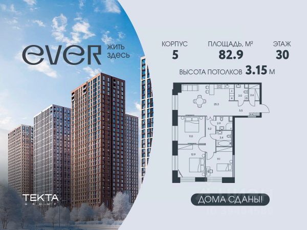 Рассрочка 0% с платежом от 120 000 ₽ в месяц. 4-комн. квартира в ЖК "Ever" на 30 этаже в 34 этажном здании Корпус 5. Общая площадь: 82.9 кв.м., жилая: 52.3 кв.м. Высота потолков 3.15 м. ЖК EVER это современный жилой комплекс в районе Обручева, всего в 7 минутах ходьбы от метро Калужская. В ЖК EVER представлены комфортабельные квартиры с разнообразными планировками, включая редкие форматы с мастер-спальнями и зимними садами. Благоустроенная территория с акцентом на природные элементы создает атмосферу спокойствия и уюта. В комплексе есть подземный паркинг и кладовые помещения. EVER это сочетание комфорта городской жизни и близости к природе.