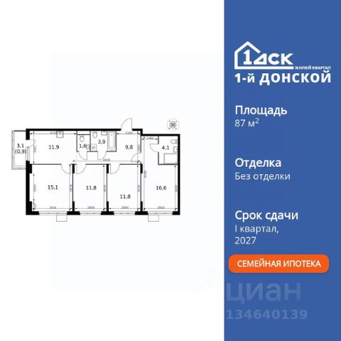 Продаётся 4-к квартира номер 134 общей площадью 87.5 кв.м. на 14-м этаже 24 этажного здания. Без отделки. Цена с учётом скидки. Особенности квартиры: - Мастер-зона с санузлом. Уют и комфорт в одном пространстве. - Угловая планировка - больше пространства для ваших идей. - Раздельный санузел - больше удобства для всех членов семьи. - Евроформат - просторное и удобное жилье с отличной планировкой. - Кухня-гостиная - идеальное пространство для встреч с близкими. - Балкон - открытое пространство для отдыха. Квартира без отделки. Чистый холст для воплощения интерьера вашей мечты. Прямая продажа от застройщика! Жилой Комплекс класса Комфорт Плюс. Продаётся 4-к квартира номер 134 общей площадью 87.5 кв.м. на 14-м этаже 24 этажного здания. - Мастер-зона с санузлом. Уют и комфорт в одном пространстве. - Угловая планировка - больше пространства для ваших идей. - Раздельный санузел - больше удобства для всех членов семьи. - Евроформат - просторное и удобное жилье с отличной планировкой. - Кухня-гостиная - идеальное пространство для встреч с близкими. - Балкон - открытое пространство для отдыха. Квартира без отделки. Чистый холст для воплощения интерьера вашей мечты. ЖК "1-й Донской" в 7 км от МКАД: гармония городского комфорта и природы. Квартиры на 2-3 стороны света, форма секций и разная этажность создают динамичную архитектуру. Тёплая палитра фасадов и подсветка подчеркивают образ. Рядом - Ермолинский парк, Видновский лесопарк и Жуковский парк. Природа воздействует на все уровни восприятия: от видов до звуков и ароматов. Идеальный баланс для жизни в гармонии с окружающей средой. Комплекс удобно расположен в 7 км от МКАД по трассе М-4 Дон (через Видное). Расстояние до Каширского шоссе составляет 12 км. Добраться до метро и центра Москвы позволяет развитая сеть маршрутов общественного наземного транспорта. Действующая ж/д станция Калинина Павелецкого направления в 15-17 минутах ходьбы (МЦД-5 в 2025-2026 гг). "1-й Донской": продуманная среда в развивающемся районе. На территории - муниципальные школа и 2 детских сада, поликлиника, торговый центр с площадью для мероприятий. Сеть пешеходных маршрутов ведёт к магазинам и кафе, отделённым от дорог зелёными фито-стенами. Сквозные подъезды с панорамным остеклением и входами с улицы и двора наполнены светом. Всё для комфортной жизни в шаговой доступности, от повседневных нужд до общественных пространств.