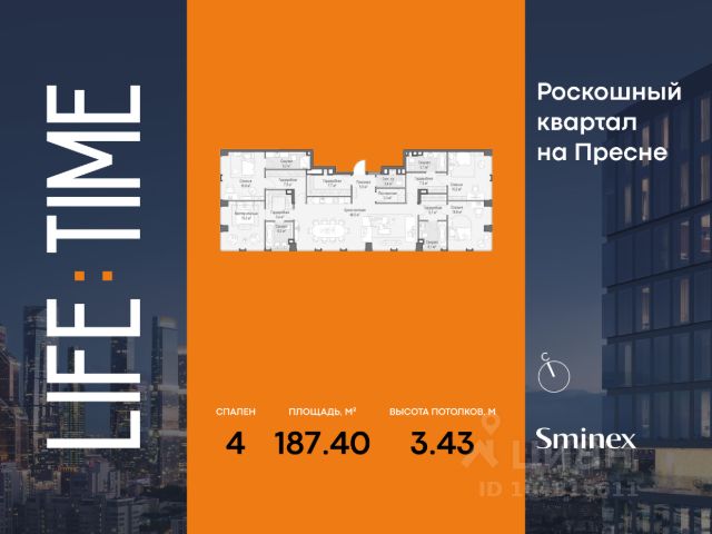 Life Time - роскошный современный квартал на Пресне, в наиболее быстро растущем премиальном районе ЦАО. Его насыщенная инфраструктура и выгодное расположение дарят время для жизни. Вы больше не тратите его на дорогу или ожидание, при этом ни в чём себе не отказывая. На территории предусмотрено всё для комфортной жизни: • двор-парк площадью 1,8 гектара с прудом и фонтанами; • Clubhouse - инфраструктурный центр в отдельном здании с исчерпывающими возможностями для спорта, отдыха и досуга только для жителей; • спортивная инфраструктура на улице и в помещении, в том числе бассейн длиной 25 метров, хот-таб, хаммам, сауна, бьюти-зона; • клубная гостиная с террасой; • всё для развития и досуга детей любого возраста, в том числе детский сад и школа. Life Time находится в центре сложившегося премиального района, в окружении многочисленных парков. Удобная транспортная доступность и прямой выезд на Звенигородское шоссе позволяют без проблем добраться до Садового кольца и Москва-Сити. Архитектурный стиль квартала - роскошный минимализм. Дома десятилетиями будут выглядеть современно. В Life Time представлен широкий выбор как квартир, так и особых форматов: двухэтажные пентхаусы с каминами и террасами, скай-виллы.
