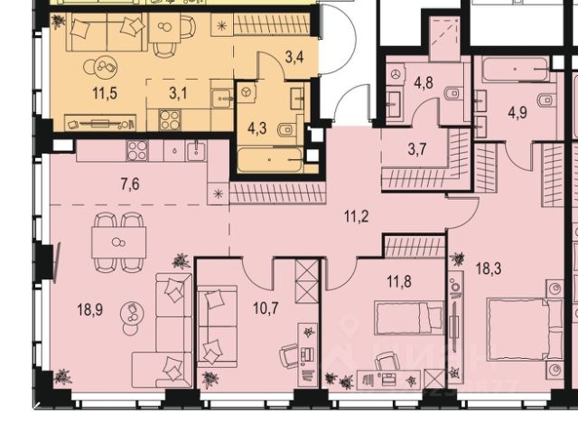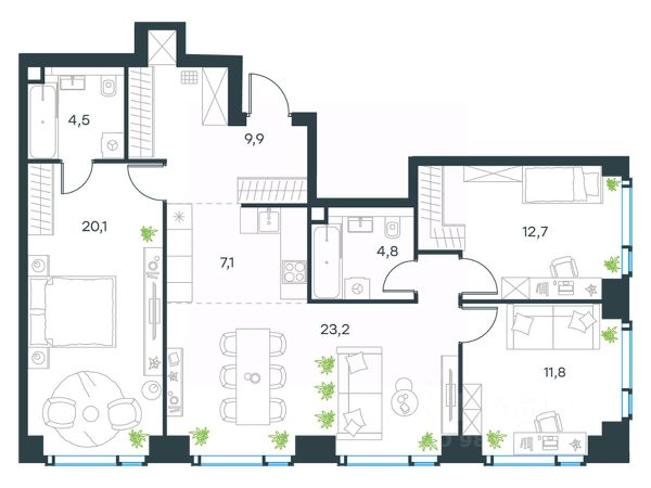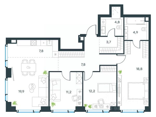 Цена указана с учётом скидки при 100%-й оплате, несубсидированной ипотеке, рассрочке (кроме программы "Рассрочка 0%"). В жилом квартале, расположенном на границе с природным заказником "Долина реки Очаковки", продаётся 4-комнатная квартира площадью 95.30 кв.м без отделки. Квартира расположена на 6 этаже 42-этажного корпуса 2 в жилом комплексе бизнес-класса Level Мичуринский (компания Level Group/Левел групп). Отличная транспортная доступность - 10 мин. пешком до станции метро "Мичуринский проспект" - 15 мин. пешком до станции метро "Аминьевская" - 7 мин. на авто до МКАД - 10 мин. на авто до ТТК - 15 мин. на авто до Москва-Сити Продуманный архитектурный проект - Выразительная архитектура от известных бюро: корпуса 1-6 - СПИЧ, корпуса 7-13 - Borisov Architects; - Из окон открываются живописные виды на парки, Москва-Сити и МГУ; - Высокие потолки до 6,35 м; - Стильные лобби с окнами в пол и высокими потолками до 4,7 м; - С каждого этажа дома на лифте можно спуститься в подземный отапливаемый паркинг. Расположение Level Мичуринский строится в одном из самых зеленых районов Москвы - Очаково-Матвеевское. Этот уголок столицы идеален для поддержания здорового образа жизни. В шаговой доступности от проекта находятся заказник "Долина реки Очаковки" - 1 мин. пешком и Очаковский парк - 7 мин. пешком. На велосипеде можно добраться до таких парков, как "Событие", парк Олимпийской деревни, парк 50-летия Октября и парк Школьников. В 15-минутной доступности на авто расположено более 30 детских садов (из них 14 в пешей доступности), 32 школы (из них 13 в пешей доступности) и 14 вузов. В ближайшем окружении работает более 25 медицинских учреждений, 11 спортивных клубов и 22 продуктовых супермаркета. Внутренняя инфраструктура На территории жилого комплекса строится три детских сада и школа. На первых этажах домов откроется супермаркет, фитнес-центр, ресторан, кафе и другие сервисы. Подземные этажи займут паркинги: трехуровневые в этапах 1 и 2, одноуровневый в этапах 3 и 4. Преимущества проекта - 4,5 га благоустроенной территории с видовым мостом, уличным кинотеатром, зонами для тихого отдыха, работы, воркаута, площадки для петанка, футбола, настольного тенниса и пляжного волейбола; - Дизайнерские лобби с панорамным видом на двор, мойками для лап животных и комфортными зонами ожидания. - Безопасность жителей: круглосуточное видеонаблюдение всех зон общего пользования (лобби, лифты, паркинги, детские площадки), система контроля доступа, управление видеодомофоном через мобильное приложение, единый ключ доступа на территорию жилого комплекса. - Технологии и комфорт: высокоскоростной Wi-Fi в лобби и на придомовой территории, автоматическая система контроля и учета ресурсов, абонентская связь с консьержем, распознавание номеров автомобилей при въезде/выезде в/из паркинга.