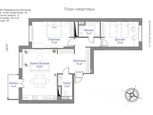 Продается четырехкомнатная квартира с отделкой в 18 фазе города-парка "Переделкино Ближнее". Общая площадь квартиры - 107,1 кв. м, этаж 17 из 17. Срок сдачи - 2 квартал 2027 года. Тип дома - монолитный. ТОЛЬКО ДО 28 ФЕВРАЛЯ: - Рассрочка до 13 месяцев с первоначальным взносом от 10% - Ежемесячный платеж от 50 000 руб. *подробную информацию по скидкам и акциям уточняйте в отделе продаж. Корпус состоит из 12 секций c переменной этажностью 8-17 этажей. Город-парк "Переделкино Ближнее" расположен в 8 км от МКАД по Боровскому шоссе. ТРАНСПОРТНАЯ ДОСТУПНОСТЬ: - 10 минут пешком до МЦД-4 "Мичуринец" - 14 минут на машине до станции метро "Филатов Луг" Сокольнической линии - 15 минут пешком до станции метро "Рассказовка" Солнцевской линии - 30 минут до центра Москвы - Прямой выезд на дорогу Солнцево-Бутово-Варшавское шоссе, минуя жилую застройку всего ЖК РАЗВИТАЯ СОЦИАЛЬНАЯ ИНФРАСТРУКТУРА: - 7 детских садов, 3 школы - детская музыкальная школа имени Б.Л. Пастернака - поликлиника для взрослых ГБУЗ ГП 212 ДЗМ филиал 70 - пожарная часть 66. Аварийно-спасательный отряд 6 ГКУ - банки, продуктовые магазины, аптеки, фитнес центры, салоны красоты и пр БЛАГОУСТРОЙСТВО: - дворы без машин - игровые зоны и развивающие детские площадки - детские площадки разделены по возрастным группам - зоны для пассивного отдыха - зоны для занятий спорта ОСОБЕННОСТИ АРХИТЕКТУРЫ: - переменная этажность открывает видовые характеристики на реку Алешинка и на лесопарковую зону - увеличенное остекление в квартирах - высокие потолки от 3,03 м. - безбарьерные входные группы - колясочные в каждой входной группе - кладовые помещения расположены на -1 этаже каждой секции и на 2-17 жилых этажах в секции 11 - коммерческие помещения на 1 этаже в 11 и 12 секциях - в секциях 2-4, 6-7, 11-12 по 2 лифта: 1 пассажирский, 1 грузовой - в секциях 1, 5, 8-10: 1 грузовой лифт - мусоропроводы в домах не предусмотрены, запроектированы специальные зона для сбора мусора - на фасаде предусмотрены корзины для установки кондиционеров. - видеонаблюдение установленное в холлах первых этажей, у подъездов и прилегающей территории АВТОРСКИЙ ДИЗАЙН: Входные группы выполнены по авторскому дизайну, оснащены системой "тёплый пол". В каждой входной группе будет располагаться комфортабельная зона ожидания, почтовые ящики, колясочная, акцентные пуфы и столик.