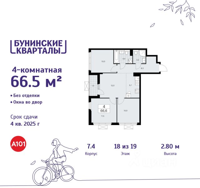 Продается четырехкомнатная квартира 627 в новостройке ЖК "Бунинские кварталы" по адресу Москва, ТиНАО, Новомосковский АО, Сосенское С/П, жилой комплекс Бунинские Кварталы, 9.2, район Коммунарка, Новомосковский административный округ, Москва. Общая площадь квартиры - 101.20 кв. м., этаж 16 из 19, секция 8. Тип проекта, по которому построен дом - монолит, компания-застройщик - ООО "А101". Стоимость квартиры - 29724464 Р. Срок сдачи - 1 квартал 2026. ПРЕДЛОЖЕНИЯ ОТ ЗАСТРОЙЩИКА В ФЕВРАЛЕ 2026: Скидки до 10% на все квартиры. Только в офисах продаж до 28 февраля. Ипотека от 13,9 % для всех! На весь срок. "Семейная ипотека" вернулась. Ставка от 3,5 % на весь срок! Без удорожания! Выгодное ипотечное комбо: Ипотека от 2200 р./мес. и от 6 % после рождения ребёнка! Ипотека для всех "Держи пять!" - ставка 5 % на 2 года! *более подробную информацию по скидкам и акциям уточняйте в отделе продаж ЖК "Бунинские кварталы" строится на юго-западе Москвы. Монолитные дома в лаконичной стилистике гармонируют с живописной природой. Из любой точки района удобно добираться до природных объектов, ключевых транспортных узлов, крупных торговых, спортивных, деловых и медицинских центров. Концепция уникального благоустройства района - "Выходи гулять!". Здесь появятся эстрада для районных творческих мероприятий, спортивные и игровые площадки, скейт-парк, дружелюбные пространства для домашних питомцев, благоустроенная набережная Ивановского пруда. В районе формируется собственная развитая инфраструктура: современные школа на 1100 мест и 2 детских сада на 540 малышей, магазины у дома и сетевые супермаркеты, фитнес, кафе, салоны, детские развивающие центры. Крытый каток "Самолёт Арена" - в 10 минутах пешком. За 15 минут можно дойти до действующей станции метро "Потапово". Предусмотрены удобные автомобильные выезды на проспект Куприна и улицу Александры Монаховой. Особенности "Бунинских кварталов": - ст. метро "Потапово" - 15 минут пешком - своя школа и детские сады - безопасные дворы без машин с системой контроля доступа - насыщенная инфраструктура - в шаговой доступности и на первых этажах домов