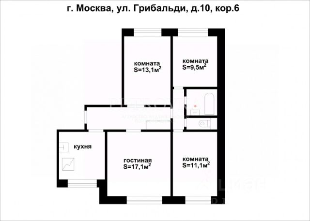 Купить 4-комнатную квартиру рядом со школой на улице Гарибальди в Москве