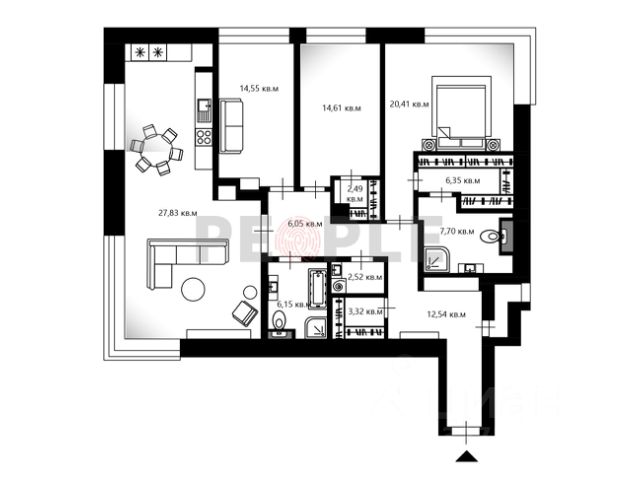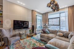 Планировка включат кухню-гостиную, мастер-спальню со своей гардеробной и ванной комнатой, вторую спальню, санузел с душевой кабиной и холл. Интерьер оформлен в стиле современной классики с использованием натуральных материалов — на полу выложены инженерная доска из дуба и керамогранит Florim, стены покрыты французской краской Majestic. Кухня из Италии укомплектована бытовой техникой Smeg. Сантехника представлена немецким брендом Dornbracht, ванна — Salini. Установлены итальянские межкомнатные двери Barausse и энергосберегающие окна Schco из Германии. Панорамные окна, ориентированные на две стороны света, наполняют пространство естественным светом. За дополнительную плату возможно приобрести машино-место в подземном паркинге.