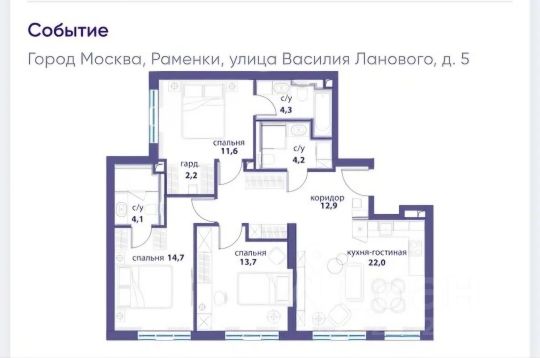 Продаётся евро 4-х-комнатная квартира в ЖК "Событие" общей площадью 89.8 кв.м: три изолированные комнаты: 13,6 кв.м+ 13 кв.м + 14 кв.м (мастер-спальня со своим отдельным с/у), кухня-гостиная 21,5 кв.м, дополнительный с/у, небольшой, но вместительный коридор. Квартира расположена на 13 этаже, большие панорамные окна, высокие потолки 3 м.