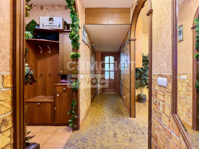 Общая площадь 63 кв.м., жилая площадь 45,4 кв.м. (20 кв.м. + 15 кв.м. + 10,4 кв.м.) зал проходной, кухня площадью 6,5 кв. м., сан/узел совместный, балкон застеклён. Окна ПВХ, выходят на обе стороны дома. Высота потолков — 2,7 метра.