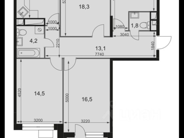 Квартира вмещает в себя прихожую, зону отдыха, 4 спальни, кухню, 3 лоджии, 2 ванных комнаты с санузлом, один гостевой санузел, кладовую и гардеробную комнаты.