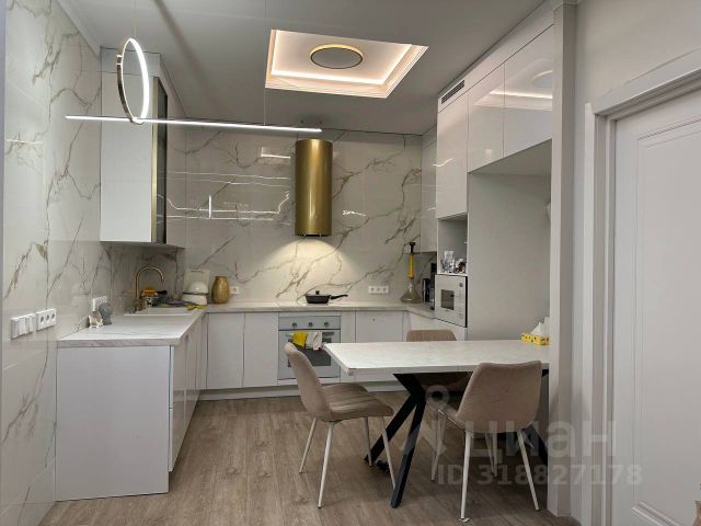 Квартира расположена на 4 этаже 4-этажного монолитного дома, мансарда. Общая площадь квартиры 90 м2 (с учетом второго уровня). Две спальни по 17м2, гардеробная 8м2, кухня-гостиная 30м2.