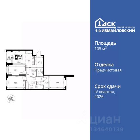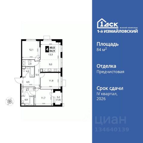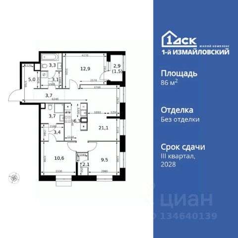 Прямая продажа от застройщика! Жилой Комплекс Комфорт класса. Продаётся 4-к квартира номер 761 общей площадью 89.1 кв.м. на 24-м этаже 32 этажного здания. Без отделки. Особенности квартиры: - Мастер-зона с санузлом и гардеробной. Всё для вашего комфорта и удобства, включая личный санузел и гардероб. - Просторная спальня, в которой можно разместить большую кровать. - Линейная планировка - максимальная функциональность и удобство. - Увеличенное количество окон - дополнительное освещение и свежий воздух. - Гостевой санузел - комфорт и удобство для ваших гостей. - Душ помимо ванной - дополнительное удобство для вашей семьи. - Ниша под стиральную машину - удобство и экономия пространства. - Евроформат - просторное и удобное жилье с отличной планировкой. - Место для игры/занятия спортом - идеальное пространство для активных детей. - Можно оборудовать 2 или более рабочих места - пространство для нескольких человек. - Просторная мягкая зона - комфорт и уют для отдыха всей семьи. - Линейная кухня - функциональность и практичность в одном решении. - Возможность добавить спальное место - дополнительный комфорт для гостей. - Гардеробная - удобство для хранения и организации вещей. - Ниша под шкаф - компактное и удобное место для вещей. - Лоджия - уютное место для отдыха и тишины. Информация о комплексе: Современный архитектурный проект "1-й Измайловский" - идеальное место для проживания, расположенное в восточной части Москвы в окружении 14 000 гектаров леса. Комплекс пронизан атмосферой здорового образа жизни и благополучия. Сиреневый сад и близлежащие лесопарки - это места, где можно насладиться лыжными прогулками зимой и тонизирующими пробежками летом. Расположенный между Щелковским шоссе и Амурской улицей, "1-й Измайловский" осмысляет себя не столько через близость к городским точкам притяжения, сколько через соседство с зелеными пространствами и спортивными объектами. Он отгорожен от шоссе застройкой первой линии и собственными садами здоровья. В его окнах - изумрудное море парка "Лосиный остров" и густые кроны окрестных дворов. В его графике - занятия спортом и прогулки в Измайлове. Транспортная доступность: Не более 2,5 км до станций метро "Щёлковская" и "Черкизовская" и МЦК "Локомотив". Щёлковское шоссе соединяет квартал с Северо-восточной хордой и МКАД, Центральным автовокзалом и Восточным железнодорожным вокзалом. Две автобусные остановки в паре минут ходьбы и 11 маршрутов общественного транспорта. На автомобиле 3 минуты до СВХ 12 минут до ТТК 15 минут до Садового кольца Внутренняя инфраструктура: Комплекс находится в исторически сложившемся районе Москвы с хорошим качеством и плотностью инфраструктуры. Торговые центры и сетевые магазины -6 детских садов, включая собственный детский сад на 125 мест -3 школы, включая собственную школу -Поликлиники и медицинские центры -Парки и зоны отдыха Расположение архитектурного проекта создает все условия для тех, кто стремится к здоровому образу жизни и для