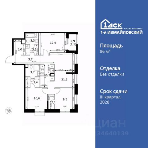 Прямая продажа от застройщика! Жилой Комплекс Комфорт класса. Продаётся 4-к квартира номер 420 общей площадью 85.3 кв.м. на 2-м этаже 32 этажного здания. Без отделки. Цена с учётом скидки. Особенности квартиры: - Мастер-зона с санузлом и гардеробной. Всё для вашего комфорта и удобства, включая личный санузел и гардероб. - Просторная спальня, в которой можно разместить большую кровать. - Угловая планировка - больше пространства для ваших идей. - Увеличенное количество окон - дополнительное освещение и свежий воздух. - Гостевой санузел - комфорт и удобство для ваших гостей. - Душ помимо ванной - дополнительное удобство для вашей семьи. - Постирочная - организуйте пространство для стирки и сушки вещей. - Евроформат - просторное и удобное жилье с отличной планировкой. - Место для игры/занятия спортом - идеальное пространство для активных детей. - Можно оборудовать 2 или более рабочих места - пространство для нескольких человек. - Возможность добавить спальное место - дополнительный комфорт для гостей. - Проходная кухня-гостиная - идеальное пространство для общения и готовки. - Гардеробная - удобство для хранения и организации вещей. - Ниша под шкаф - компактное и удобное место для вещей. - Лоджия - уютное место для отдыха и тишины. Информация о комплексе: Современный архитектурный проект "1-й Измайловский" - идеальное место для проживания, расположенное в восточной части Москвы в окружении 14 000 гектаров леса. Комплекс пронизан атмосферой здорового образа жизни и благополучия. Сиреневый сад и близлежащие лесопарки - это места, где можно насладиться лыжными прогулками зимой и тонизирующими пробежками летом. Расположенный между Щелковским шоссе и Амурской улицей, "1-й Измайловский" осмысляет себя не столько через близость к городским точкам притяжения, сколько через соседство с зелеными пространствами и спортивными объектами. Он отгорожен от шоссе застройкой первой линии и собственными садами здоровья. В его окнах - изумрудное море парка "Лосиный остров" и густые кроны окрестных дворов. В его графике - занятия спортом и прогулки в Измайлове. Транспортная доступность: Не более 2,5 км до станций метро "Щёлковская" и "Черкизовская" и МЦК "Локомотив". Щёлковское шоссе соединяет квартал с Северо-восточной хордой и МКАД, Центральным автовокзалом и Восточным железнодорожным вокзалом. Две автобусные остановки в паре минут ходьбы и 11 маршрутов общественного транспорта. На автомобиле 3 минуты до СВХ 12 минут до ТТК 15 минут до Садового кольца Внутренняя инфраструктура: Комплекс находится в исторически сложившемся районе Москвы с хорошим качеством и плотностью инфраструктуры. Торговые центры и сетевые магазины -6 детских садов, включая собственный детский сад на 125 мест -3 школы, включая собственную школу -Поликлиники и медицинские центры -Парки и зоны отдыха Расположение архитектурного проекта создает все условия для тех, кто стремится к здоровому образу жизни и для тех, кто уже сделал выбор в его пользу. В