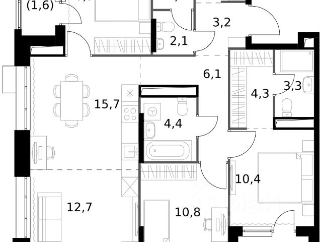 Прямая продажа от застройщика! Жилой Комплекс класса Комфорт+. Продаётся 4-к квартира номер 402 общей площадью 88.3 кв.м. на 24-м этаже 25 этажного дома. Без отделки. Особенности квартиры: - Мастер-зона с санузлом и гардеробной. Всё для вашего комфорта и удобства, включая личный санузел и гардероб. - Просторная спальня, в которой можно разместить большую кровать. - Угловая планировка - больше пространства для ваших идей. - Увеличенная ширина окна/окон - больше света и визуального простора. - Увеличенное количество окон - дополнительное освещение и свежий воздух. - Душ помимо ванной - дополнительное удобство для вашей семьи. - Евроформат - просторное и удобное жилье с отличной планировкой. - Место для игры/занятия спортом - идеальное пространство для активных детей. - Можно оборудовать 2 или более рабочих места - пространство для нескольких человек. - Можно оборудовать рабочее место - комфорт для работы и учёбы. - Можно сделать распашные двери - удобный доступ и стильный акцент. - Линейная кухня - функциональность и практичность в одном решении. - Возможность добавить спальное место - дополнительный комфорт для гостей. - Гардеробная - удобство для хранения и организации вещей. - Просторная гардеробная - место для вашего личного пространства. - Ниша под шкаф - компактное и удобное место для вещей. - Лоджия - уютное место для отдыха и тишины. - Панорамное остекление лоджии - открывает вид на окружающий мир. Информация о комплексе: Весь микрорайон спроектирован в концепции "без машин". Пейзаж не портят припаркованные автомобили, а родители могут не опасаться за перемещение детей по всему кварталу. Территория комплекса - царство пешеходов. А что делать, если Вы или Вам подвезли чтото габаритное? Проблему решают сквозные подъезды, открывающие доступ в здание с внешней стороны комплекса. Проезд к домам организован по внешнему контуру микрорайона. Места для автомобилей отведены на 7 этажах наземного паркинга и в подземном паркинге 6-го корпуса. За порядком и безопасностью зорко следит множество камер. Безбарьерная среда облегчает передвижение по территории молодых родителей с колясками, маленьких детей и жильцов с ограниченными возможностями. Транспортная доступность: "1-й Саларьевский" расположен в Новой Москве всего в 2 км от МКАД и 5 минутах ходьбы от метро Саларьево. Если Вы за рулем, для Вас удобный выезд на скоростное Киевское шоссе. Передвигаетесь не на автомобиле? Станция метро Саларьево и автовокзал в пешей доступности. У метро находится один из крупнейших ТЦ Новой Москвы "Саларис". Это значит, что всевозможные покупки и разнообразные развлечения для всей семьи тоже рядом. Личный автотранспорт: До Киевского шоссе - 0,2 км До МКАД - 2,4 км До Калужского шоссе - 5 км До Ленинского проспекта - 3,2 км Общественный транспорт: До станции метро "Саларьево" - 7 мин пешком До остановок наземного транспорта - 5-10 мин пешком До Ленинского проспекта на автобусе - 10 мин Внутренняя инфраструктура