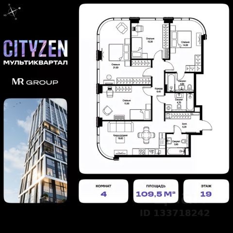 4-комнатные квартиры в жилом комплексе Мультиквартал CITYZENЖК «Мультиквартал CITYZEN»