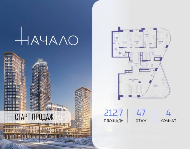В престижном районе Пресня, на перекрестке делового и исторического центров Москвы, продается четырехкомнатная квартира площадью 164.20 кв. м без отделки. Квартира находится на 10 этаже 11-этажного дома, в новом элитном жилом комплексе "Начало" от девелопера "Донстрой". Реализация проекта запланирована на 1 квартал 2030 года. Начало - футуристический дом на Пресне в нескольких минутах от Сити и Садового кольца. Проект по-настоящему космического масштаба, где есть все, чтобы раскрыть себя и свои возможности. Расположение Пресня - один из самых престижных районов Москвы. Жить здесь - значит стать частью истории столицы, быть в эпицентре деловой активности города и ощущать, как сама Вселенная вращается вокруг вас. - 5 минут пешком до Красногвардейских прудов; - 15 минут пешком до ст. метро "Улица 1905 года"; - 6 минут на автомобиле до Садового кольца и небоскрёбов "Москва-Сити"; - 12 минут на автомобиле до Кремля. Архитектура как путешествие Как росток пробивает скалу, как растет кристалл, как ракета устремляется ввысь - так формируется архитектурный образ этого дома. Точно выверенный баланс между футуристичными формами и функциональным содержанием дома выводит жизнь в нем на новую орбиту. Стеклянные фасады отражают небо и город, превращая здание в зеркало для окружающего ландшафта. Двор между небом и землёй Просторная территория двора с тремя тематическими зонами отдыха: "Млечный путь" - для детских игр и развлечений; "Космический сад" - для тихого отдыха и релакса; "Метеоритный сад" - для любителей спорта. Открытый променад - сквозной маршрут на крыше стилобата с зонами отдыха, занятий спортом, детских игр и совместной работы. Все площадки плавно связаны между собой прогулочной дорожкой. Теплая кольцевая галерея и мосты над пространством двора - все корпуса "стыкуются", точно модули космической станции. Главный центр притяжения В составе проекта возводится собственный комьюнити-центр, где создана идеальная атмосфера для любых начинаний: - Детский клуб для будущих покорителей Вселенной; - Коворкинги для решения задач планетарного и космического масштабов; - Переговорные для судьбоносных и просто важных встреч; - Лаунжи с атмосферой дзена и релакса; - Библиотека для спокойного чтения; - Кинотеатр для классики и блокбастеров. Территория комфорта и приватности Всё нужное рядом: - Современный образовательный центр со школой и детским садом - для ваших детей; - Фитнес-центр с бассейном - для релакса и борьбы со стрессом; - Ресторанная улица: кафе, рестораны, летние террасы - для деловых обедов и семейных ужинов; - Пекарня и минимаркет в доме - для ежедневных покупок; - Сквер у дома - для неспешных прогулок и спокойного отдыха; - Никаких такси на улице. Машина заберет вас прямо в подземном паркинге вашего корпуса.