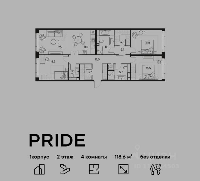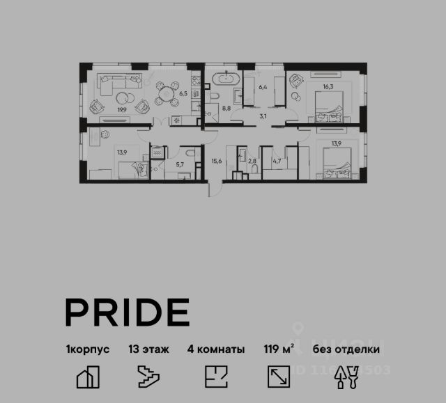 В премиальном жилом квартале PRIDE продается 4-комнатная квартира в 1 корпусе, на 11 этаже, в секции 6. Её общая площадь составляет 119.8 м². Пространство включает 3 уютные спальни 14,3 м², 14,4 м², 15,8 м², просторную кухню-гостиную 29,2 м² и 2 ванные комнаты 8,4 м² и 5,7 м². Ключи в 2026 году. Удобная локация: Жилой квартал расположен в 15 минутах от Цветного бульвара в историческом районе Марьина Роща. До любой точки города быстро и удобно добраться, как на общественном транспорте, так и на авто — комплекс находится всего в 3 минутах от ТТК и в пешей доступности от метро. Яркая архитектура с переменной высотностью от 7 до 22 этажей от именитого бюро APEX формирует запоминающийся облик проекта. Развитая инфраструктура: Территория квартала делится на несколько отдельных частей: открытый просторный бульвар 3500 м² для прогулок и два внутренних камерных двора. Внутри предусмотрены площадки для спорта, места для игр и тихие пространства для отдыха и неторопливого общения. Коммерческие и торговые помещения спроектированы на уровне первых этажей: супермаркеты, магазины, рестораны и кофейни, барбершоп, спа-салон и другие сервисные точки. Образовательный центр со школой на 257 учеников и детским садом на 112 мест на собственной территории квартал - идеальное решение для семей с детьми. Таким образом, внутренняя инфраструктура PRIDE обеспечит все базовые потребности будущих жителей. Благоустроенная территория: Ландшафтный дизайн с многоуровневым и замысловатым озеленением будет радовать жителей на протяжении всех сезонов — богатая флора дворов включает в себя несколько десятков видов растений. Лобби как в лучших отелях мира: На первых этажах резидентов и гостей встретят лобби с авторским дизайном от Sundukovy Sisters, бюро знаменито своими работами для отелей и ресторанов премиум-класса во всем мире. Надежный застройщик: Девелопер PIONEER — компания с 24-летней историей. В портфеле — 40 проектов жилой, коммерческой, социальной и многофункциональной недвижимости в Москве и Санкт-Петербурге. С 2001 года было реализовано 2,9 млн м². В настоящее время 1,6 млн м² находятся в стадии проектирования и строительства. Среди новых знаковых проектов девелопера — премиальные жилые кварталы и деловые объекты класса A.