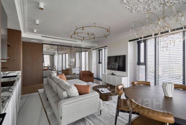 Продаётся 4-комнатная квартира площадью 154,10 кв.м. на 4 этаже в жилом комплексе SKY HOUSE. Жилой комплекс расположен на Мытной улице, в историческом центре Москвы в районе Якиманка. Превосходная транспортная доступность комплекса обеспечена за счет близости крупных транспортных магистралей и кольцевых станций метро: 5 минут до Садового кольца, 7 минут на автомобиле до Кремля, 10 минут пешком до станций "Октябрьская", "Добрынинская", "Серпуховская", "Шаболовская". Четыре жилых дома высотой 22-29 этажей, с собственной инфраструктурой на благоустроенной территории. Панорамное остекление открывает виды на исторический центр Москвы во всем его многообразии и красоте. Современная архитектура и рациональный подход к инфраструктуре отличают проект в своей локации. Гармоничное сочетание внутренней и внешней среды: детские сады и школы, медицинские центры, магазины, кафе, рестораны и торговые центры, кинотеатры, Даниловский рынок и места для прогулок, музеи и центры современного искусства всё, что нужно для комфортной жизни в центре Москвы, находится в пешей доступности. 4-комнатная квартира в ЖК Sky House в Москве.