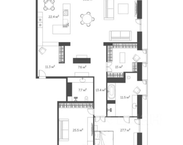 Лот: 83420. Эксклюзивно в продаже только у NF GROUP. В продаже стильная квартира с новой отделкой и террасой в жилом комплексе премиум-класса "Снегири ЭКО" в Раменках. Планировка: гостиная-столовая с зоной кухни с островом и выходом на лоджию для завтраков с видом на парк, мастер-спальня с ванной комнатой и гардеробной, детская с ванной комнатой и гардеробной, кабинет (гостевая спальня) с выходом на благоустроенную террасу с видом в зеленый двор, гостевой санузел с постирочной. Выполнена новая отделка по авторскому проекту с применением натуральных материалов и самых современных инженерных решений, квартира меблирована и оснащена качественной бытовой техникой. Окна выходят на 3 стороны света, в благоустроенный внутренний двор с ландшафтным дизайном. Высота потолка 3,5 м. Есть возможность приобретения кладового помещения и машино-места в подземном паркинге. "Снегири ЭКО" клубный малоэтажный комплекс с атмосферой загородной жизни на Западе Москвы, в 2 минутах езды от Кутузовского проспекта. Огороженная охраняемая территория с ландшафтным дизайном, презентабельные входные группы, современные инженерные системы и собственная инфраструктура. Участник ассоциации агентств элитной недвижимости AREA 4-комнатная квартира в ЖК Снегири Эко в Москве.