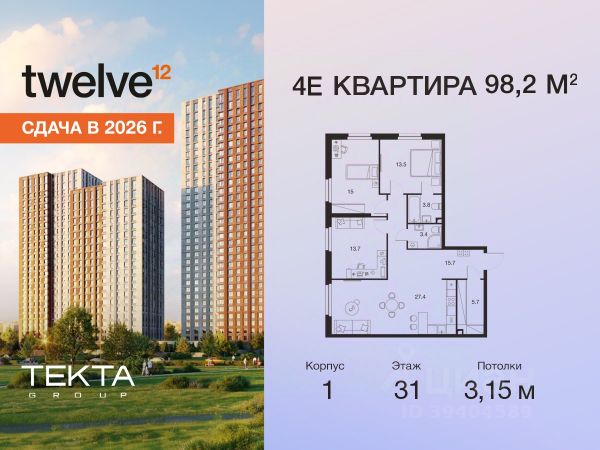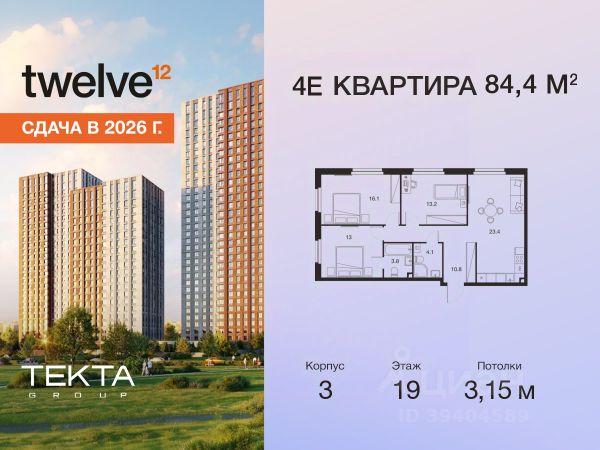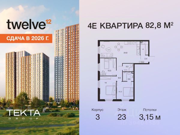 Рассрочка 0% с платежом от 120 000 ₽ в месяц. Сдача уже в 2026 году 4-комн. квартира в ЖК "Твелв" на 7 этаже в 28 этажном здании Корпус 3. Общая площадь: 82.8 кв.м., жилая: 53.30 кв.м. Высота потолков 3.00 м. ЖК Твелв от застройщика Текта Групп — это новый уровень жизни в районе Нагорный в 3-х минутах от станции метро. Проект представляет собой воплощение современной концепции комфортной жизни, где функциональность органично сочетается с эстетикой. Архитектура Твелв создает атмосферу, вдохновляющую на успех и располагающую к позитивным эмоциям. Дом, в котором каждый день будет наполнен уютом, а не рутинной работой и дорожными пробками. Твелв предлагает своим жильцам продуманные планировки, возможность объединения квартир, а также увидеть красоту города через угловое остекление увеличенных окон. Особое внимание уделено комфорту жителей: благоустроенная территория, зеленые насаждения, детские площадки, парковка. ЖК Твелв — это больше, чем просто жилье: это атмосфера умиротворенности, комфорта и гармонии.