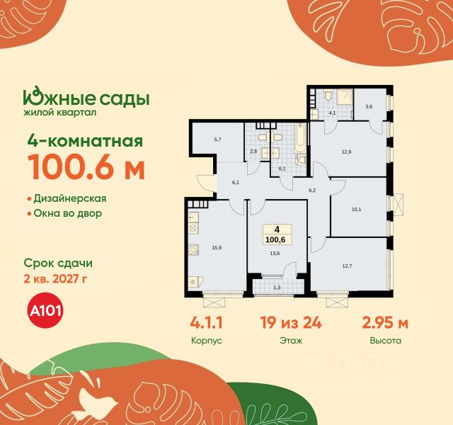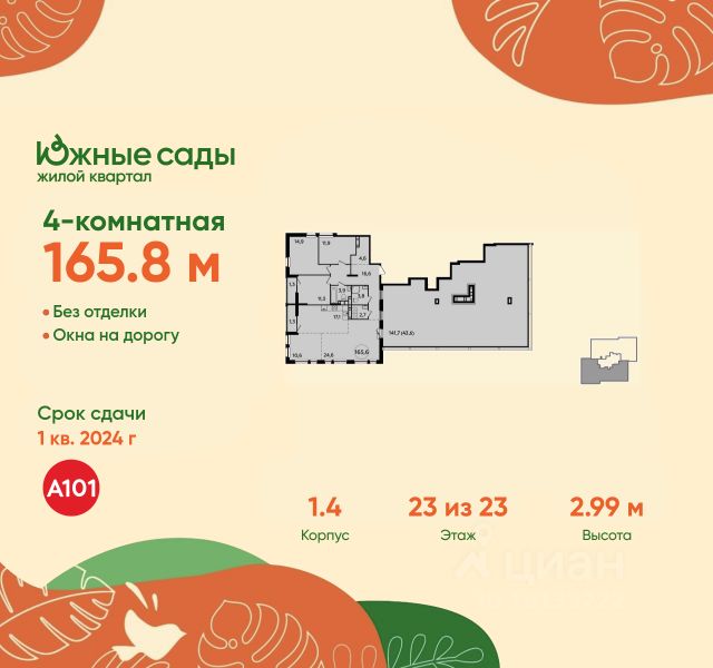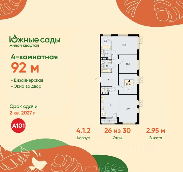 • ✓ В базе Циан 32 4-комнатных квартир в ЖК Южные сады в Москве