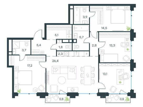Цена указана с учётом скидки при 100%-й оплате, несубсидированной ипотеке, рассрочке (кроме программы "Рассрочка 0%"). В Басманном районе (ЦАО) продается 5-комнатная квартира площадью 113.90 кв.м без отделки. Квартира расположена на 9 этаже 9-этажного корпуса " A" в жилом комплексе бизнес-класса Level Бауманская (компания Level Group). Отличная транспортная доступность: - 15 мин. пешком до метро "Бауманская" и "Электрозаводская"; - 4 мин. на авто до ТТК; - 8 мин. на авто до Садового кольца; - 15 мин. на авто до Кремля. Продуманный архитектурный проект: - Архитектура от бюро ARCH(E)TYPE, вдохновленная историей района; - 95% квартир с панорамными видами на набережные, парки и сталинские высотки; - Высокие потолки от 3,02 м до 6,3 м; - Лобби с комфортными лаунж-зонами; - Благоустроенный закрытый двор без машин. Расположение и инфраструктура: Level Бауманская расположен в престижном Басманном районе (ЦАО). В пешей доступности находится легендарный МГТУ им. Баумана, Британский и Ломоносовский лицеи, а за 10 минут на автомобиле можно доехать до НИУ ВШЭ и других престижных вузов. На территории проекта предусмотрена развитая внутренняя инфраструктура: собственный детский сад и 10 коммерческих помещений на первых этажах домов. Благоустройство: Концепция благоустройства создана в соавторстве с именитым бюро GAFA. На площади 0,35 га расположатся зоны для отдыха, занятий спортом и прогулок. Во дворе для жителей жилого комплекса будет создан коворкинг прямо на свежем воздухе - открытые беседки и Wi-Fi на территории. Атмосферу приватности подчеркнёт обилие растительности - деревья и кустарники займут 50% двора. За счёт большого количества хвойных насаждений территория жилого комплекса будет зелёной круглый год. Инженерия и комфорт: Жители Level Бауманская не зависят от сезонного отключения горячей воды. Для этого в проекте предусмотрены центральные водонагреватели, обеспечивающие комфорт круглый год. Для безопасности созданы следующие системы контроля доступа: круглосуточное видеонаблюдение всех общественных зон (лобби, двор, лифты, паркинг), вызывные панели у входов на закрытую территорию, видеодомофоны с возможностью управления через мобильное приложение, распознавание автомобильных номеров при въезде/выезде в/из паркинга. По заявке собственнику предоставляется возможность просмотра изображения отдельных видеокамер. Лифты: В жилом комплексе устанавливается лифтовое оборудование Sicher Elevator - одного из ведущих производителей с 20-летним опытом и 40 представительствами по всему миру. Кабины от Sicher Elevator отличаются тихим и плавным ходом, особой износостойкостью и современными технологическими и дизайнерскими решениями. Все лифты имеют прямой доступ в паркинг с жилых этажей. В домах также предусмотрен сервисный лифт. Грузоподъёмность лифтов от 450 до 1000 кг, скорость 1,6 м/с.