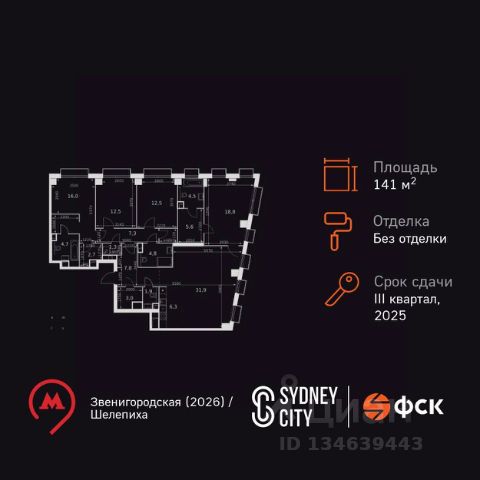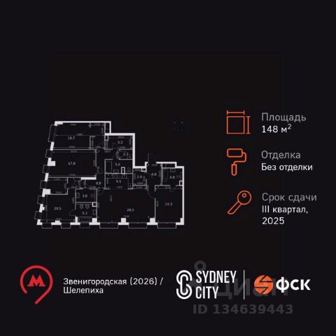 В жилом квартале продаётся многокомнатная квартира площадью 112.90 кв.м без отделки. Квартира расположена на 61 этаже 64 этажного корпуса 2 в жилом комплексе комфорт класса Level Звенигородская (компания Level Group/Левел групп).