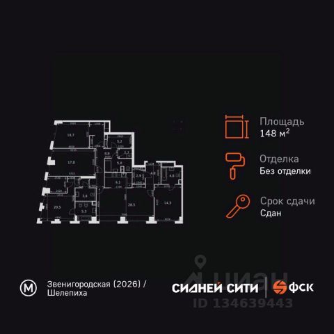 Прямая продажа от застройщика! Жилой Комплекс премиум-класса. Продаётся 5-к квартира номер 674 общей площадью 148.2 кв.м. на 42-м этаже 43 этажного здания. Без отделки. Цена с учётом скидки. Особенности квартиры: - Организуем показ в удобное для вас время! - Мастер-зона с санузлом и гардеробной. Всё для вашего комфорта и удобства, включая личный санузел и гардероб. - Просторная спальня, в которой можно разместить большую кровать. - Угловая планировка - больше пространства для ваших идей. - Увеличенная ширина окна/окон - больше света и визуального простора. - Увеличенное количество окон - дополнительное освещение и свежий воздух. - Окна в пол - панорамный вид и максимальное количество света. - Гостевой санузел - комфорт и удобство для ваших гостей. - Душ помимо ванной - дополнительное удобство для вашей семьи. - Постирочная - организуйте пространство для стирки и сушки вещей. - Евроформат - просторное и удобное жилье с отличной планировкой. - Место для игры/занятия спортом - идеальное пространство для активных детей. - Можно оборудовать рабочее место - комфорт для работы и учёбы. - Просторная мягкая зона - комфорт и уют для отдыха всей семьи. - П-образная утопленная кухня - оптимальное решение для большой семьи. - Возможность добавить спальное место - дополнительный комфорт для гостей. - Проходная кухня-гостиная - идеальное пространство для общения и готовки. - Гардеробная - удобство для хранения и организации вещей. - Просторная гардеробная - место для вашего личного пространства. - Ниша под шкаф - компактное и удобное место для вещей. Квартира без отделки. Чистый холст для воплощения интерьера вашей мечты. Информация о комплексе: Премиум-класс на берегу Москвы-реки с панорамными видами. Всего 20 минут до Москва-Сити на речном трамвае без пробок. Умный дом с защитой от протечек и голосовым управлением. Современная звукоизоляция и технологии для комфорта. Прямой выход на набережную и уникальный дизайн. Транспортная доступность: В 50 м до новой станции метро "Звенигородская". Вторая улица от ЦАО и соседство с Москва-Сити. Все виды общественного транспорта, в том числе речные трамвайчики, в пешей доступности Внутренняя инфраструктура: Сердце квартала - центральный бульвар, где кипит жизнь. Престижные школы, вузы, магазины и развлечения в минутах езды. Рядом: муниципальные ДОУ и школы, включая с изучением английского, 5 медучреждений, ТРЦ "Хорошо!" и "Авиапарк", фитнес-клубы World Class, горнолыжные склоны "Лата Трэк", ледовый дворец и 7 природных парков. Квартира без отделки - чистый холст для вашего интерьера.
