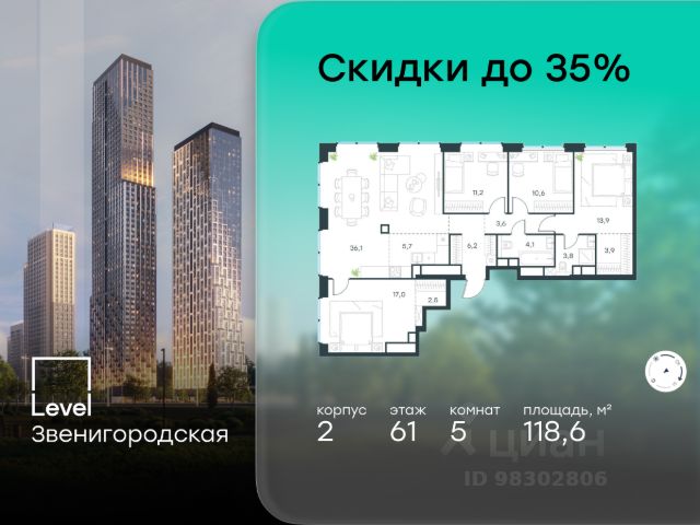 Прямая продажа от застройщика! Жилой Комплекс премиум-класса. Продаётся 5-к квартира номер 486 общей площадью 125.9 кв.м. на 42-м этаже 43 этажного здания. Без отделки. Цена с учётом скидки. Особенности квартиры: - Мастер-зона с гардеробной. Просторное место для отдыха и удобного хранения вещей. - Просторная спальня, в которой можно разместить большую кровать. - Линейная планировка - максимальная функциональность и удобство. - Увеличенное количество окон - дополнительное освещение и свежий воздух. - Панорамное окно (1 и более) - раскрывает просторы вашего дома. - Гостевой санузел - комфорт и удобство для ваших гостей. - Душ помимо ванной - дополнительное удобство для вашей семьи. - Евроформат - просторное и удобное жилье с отличной планировкой. - Место для игры/занятия спортом - идеальное пространство для активных детей. - Рабочий кабинет - место для работы и сосредоточения. - Дополнительный вход - удобство для семьи и гостей. - Увеличенная высота потолков - ощущение простора и легкости. - Можно оборудовать рабочее место - комфорт для работы и учёбы. - Двухуровневая квартира - пространство и стиль в одном. - Просторная мягкая зона - комфорт и уют для отдыха всей семьи. - Линейная кухня - функциональность и практичность в одном решении. - Возможность добавить спальное место - дополнительный комфорт для гостей. - Просторная гардеробная - место для вашего личного пространства. - Ниша под шкаф - компактное и удобное место для вещей. Информация о комплексе: Премиум-класс прямо на берегу Москвы-реки, с прямым выходом на набережную и потрясающими панорамными видами! На Шелепихинской набережной, расположен причал для речных трамваев. Вам станет доступна единственная столичная транспортная артерия, на которой никогда нет пробок: 20 минут до Москва-Сити, да еще и с вдохновляющими видами по пути. Входные группы домов - это индивидуальные дизайн-проекты, посвященные трем главным местам в жизни Лермонтова: Тарханам, Петербургу и Кавказу, которые объединяют сочетание эстетики и комфорта. Бурная жизнь соседей больше не сможет нарушить ваш покой, а к вам никто не постучит, если вы захотите прибавить громкость в любимом музыкальном треке или Ваши дети захотят устроить ночную пробежку! Живите только по своим правилам. В каждой квартире подключен базовый пакет Умная квартира забудьте о беспокойстве о протечке; настройте свои сценарии управления техникой и электричеством; общайтесь с Умной квартирой голосом; Можете легко расширить базовый пакет и подключить дополнительные опции и устройства, чтобы из любой точки мира управляй работой бытовых приборов и систем, например: включайте разогрев ужина; регулируйте яркость яркость света; регулируйте громкость музыки; настраивайте работу теплых полов; Транспортная доступность: В 50 м до новой станции метро "Звенигородская". Вторая улица от ЦАО и соседство с Москва-Сити. Все виды общественного транспорта, в том числе речные трамвайчики, в пешей доступности Внутренняя инфраструктур
