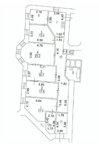 Во всех комнатах "французские окна" с чугунными ограждениями. Выполнена разводка для санузлов и отопления (трубы — сшитый полиэтилен фирмы Rehau).