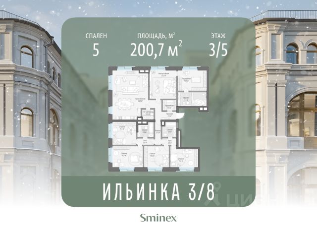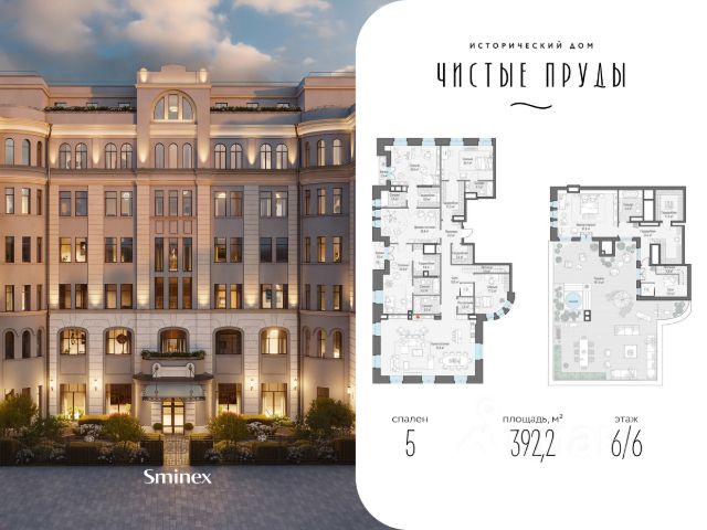 Роскошный пентхаус общей площадью 392,2 кв. м. расположен на 6-м этаже. Арочные окна, элегантный сферический эркер и высокие 4-метровые потолки создают уникальное пространство, наполненное светом. Продуманная и изысканная планировка, в которой разделены общие и приватные зоны позволит всем членам семьи совмещать свои сценарии жизни. Окна пентхауса выходят на все стороны света, дровяной камин в гостиной наполнит зимние вечера теплом и уютом, подчеркнет престиж и статус семьи. Потрескивание дров создает спокойную и романтичную атмосферу в доме. Расположенная на крыше личная терраса площадью 185 кв. м. с неповторимыми видами делает пентхаус идеальным местом для комфортной и по-настоящему роскошной жизни. "Чистые Пруды" - исторический дом на 34 квартиры в уникальном атмосферном районе Москвы, в 50 метрах от Чистых прудов. Это одно из самых романтичных и престижных мест столицы. Дом расположен в глубине квартала, в окружении тихих переулков - в полной тишине и приватности старого московского двора. "Чистые Пруды" - деликатно реконструированный исторический дом с изысканной архитектурой начала прошлого века авторства барона Отто фон Дессина. У дома максимально сохранены архитектурные формы 1915 года и подлинные кирпичные стены. В "Чистых Прудах" создана небывалая для таких домов инфраструктура. Только для жителей на месте каретного двора XIX века расположен Clubhouse с пространствами для общения соседей, здорового образа жизни и развития детей. В Lounge выделены каминная, патио, зона для проведения мастер-классов и настольных игр. Работает бесплатный фитнес по стандарту Fit Lab с зонами кардио, силовых тренажёров, свободных весов и функционального тренинга. Для детей в Clubhouse создана игровая комната по стандарту Kid`s Lab. Есть свой всесезонный двор-сад. В доме представлены роскошные квартиры с дровяными каминами и высокими потолками от 3,9 до 5,4 м. О жителях и доме заботится Служба комфорта Smineх, которая предлагает сервис уровня 5-звёздочных отелей и сохраняет изначальный облик и концепцию дома. Девелопер проекта - Sminex. Компания обладает 23-летним опытом строительства жилой и коммерческой недвижимости. В 2022 году Sminex приобрёл девелопера "Интеко", в 2024 году - "Инград". Сегодня Sminex - девелопер N1 элитной и премиальной недвижимости, который создаёт комфортную и престижную среду.