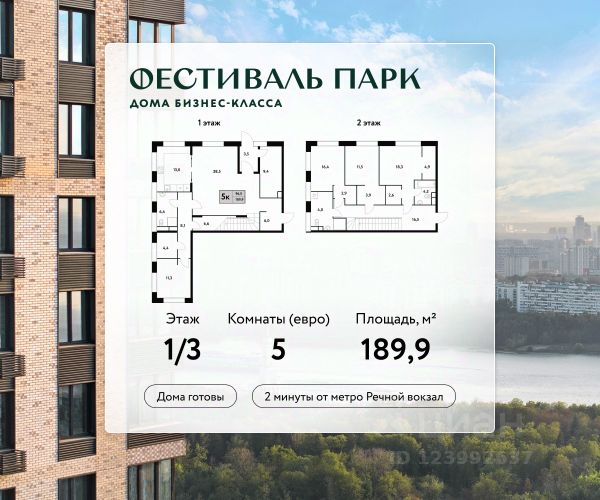 Лучшее предложение в ЖК "Фестиваль парк". Просторная четырехкомнатная квартира с завораживающими видами на Северный речной порт с великолепием его причалов и прилегающий к нему парк Северного речного вокзала, центр столицы и еще одну гордость нашего района парк Дружбы. Современный функционал планировочного решения позволит не только удобно разместиться в квартире всем членам семьи, но и выделить рабочую зону для тех, кто предпочитает работать из дома, наслаждаясь панорамой из утопающих в зелени парков. Эффектное угловое остекление в одной из спален создаст в комнате много дополнительного света, а высокие потолки 3,1 м - широту пространства. Просторная кухня-гостиная подарит своим будущим владельцам возможность собираться всем вместе за семейным ужином и украсит повседневную жизнь новыми красками. В ночное время огни района не оставят никого равнодушными. "Фестиваль Парк" это продуманный до мелочей жилой комплекс, окруженный зелеными парками и живописными прудами. Настоящая мечта, которая стала реальностью. ЖК "Фестиваль Парк" разместился в престижном Левобережном районе Москвы в двух минутах ходьбы от метро "Речной вокзал". Это одно из лучших мест столицы с точки зрения экологии - вокруг домов разбиты парки и скверы. В пешей доступности от комплекса находятся Парк Дружбы, Фестивальные пруды и набережная Химкинского водохранилища. Преимущества: Панорамные виды из окон Жизнь в окружении парков и водоемов Эффектная современная архитектура Стильные авторские лобби Закрытый благоустроенный двор без машин 2х уровневый подземный паркинг Рядом 25 детских садов, 12 школ Транспортная доступность: 2 мин. до м. Речной вокзал (200 м) 5 мин. до Ленинградского шоссе (650 м) 8 мин. до МКАД (7 км) 13 мин. до ТТК (13 км) 17 мин. до Садового кольца (17 км) 20 мин. до аэропорта Шереметьево (15 км) 8 мин. до ТЦ Метрополис (7 км) 10 мин. до ИКЕА, Мега (9 км) 12 мин. до ТЦ Авиапарк (11 км) Купить 5-комнатную квартиру элитные в районе Левобережный в Москве.